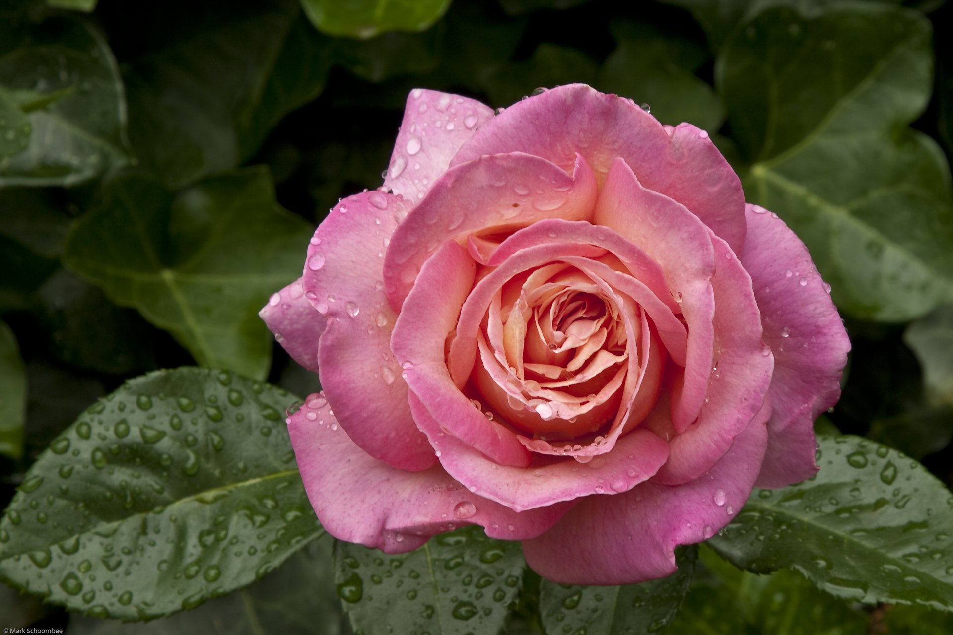 A drop of water on a rose petal