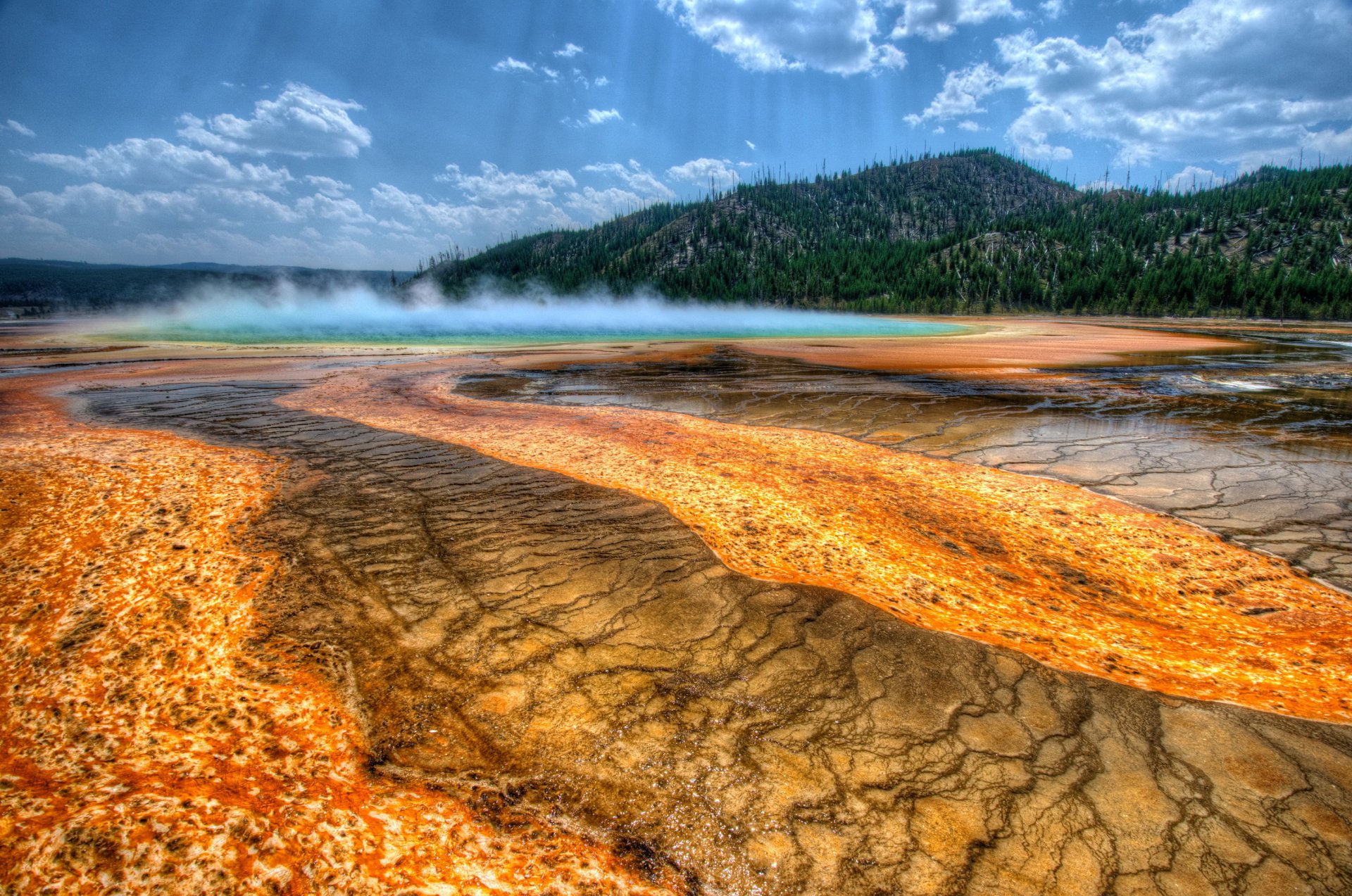 Usa, yellowstone steam, beautiful view, forest and mountainsUSA, Yellowstone steam, beautiful view, forest and mountains