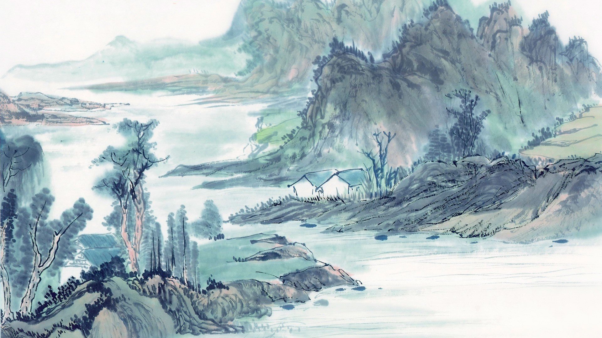Ships near the shore of the lake watercolor drawingShips near the shore of the lake watercolor drawing