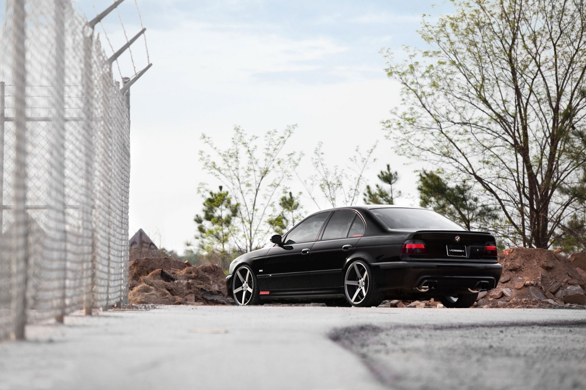 Blue bmw 3 series, front view. black car rear viewBlue BMW 3 Series, front view. Black car rear view