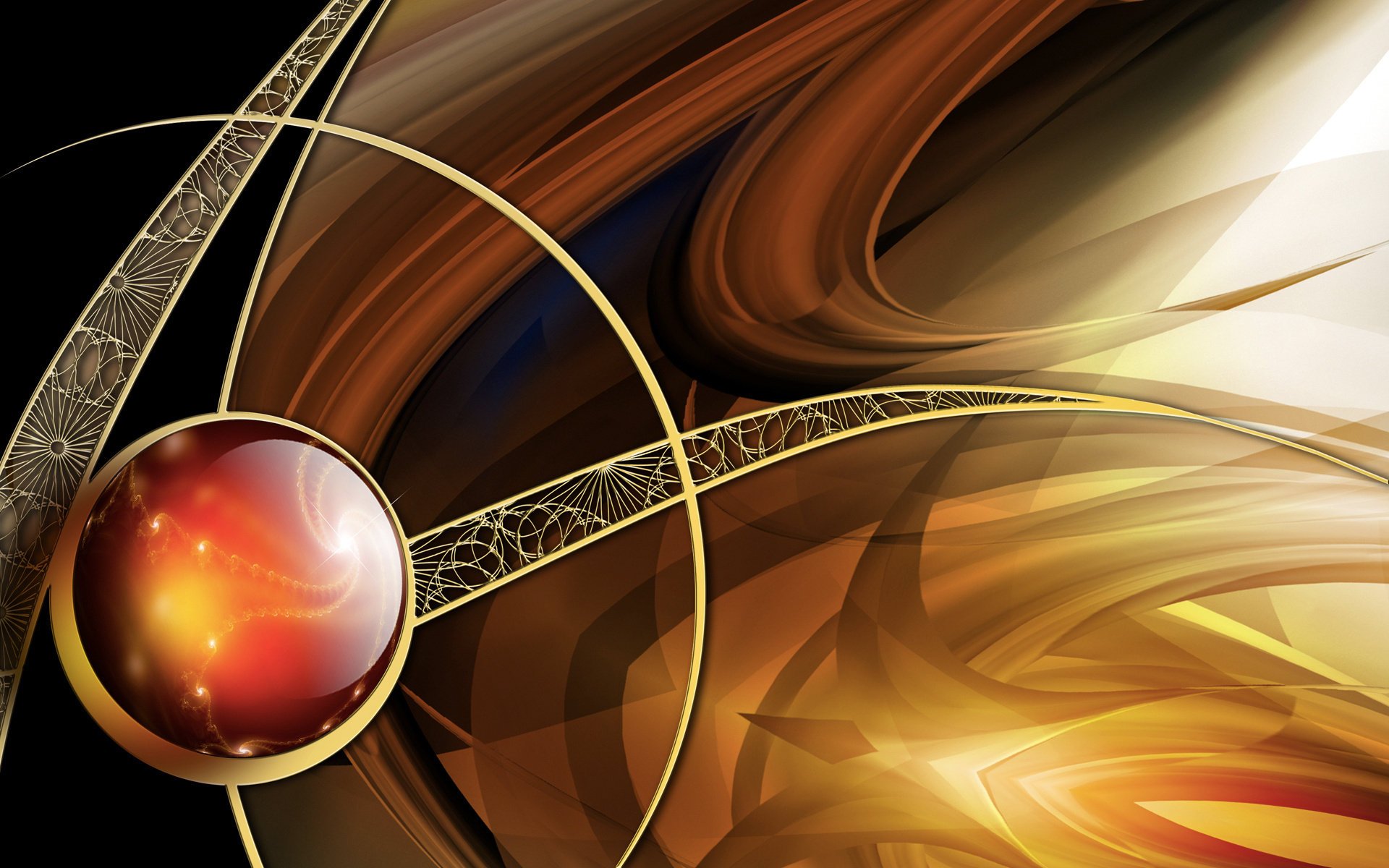 On a warm background, an amber-colored ball in a metal frameOn a warm background, an amber-colored ball in a metal frame