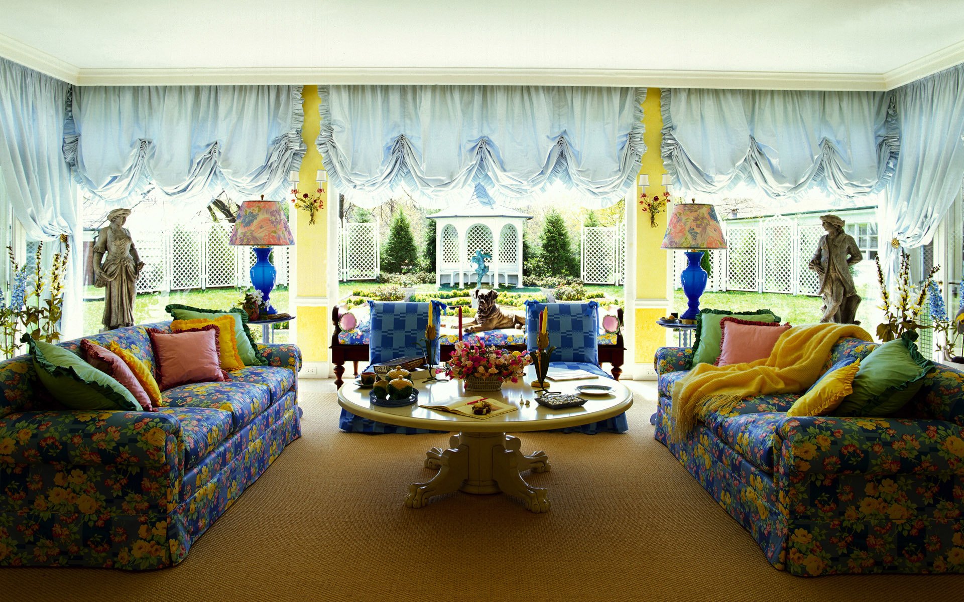 Delicious big cake with orange ribbons, which are decorated with yellow roses and petalsDelicious big cake with orange ribbons, which are decorated with yellow roses and petals