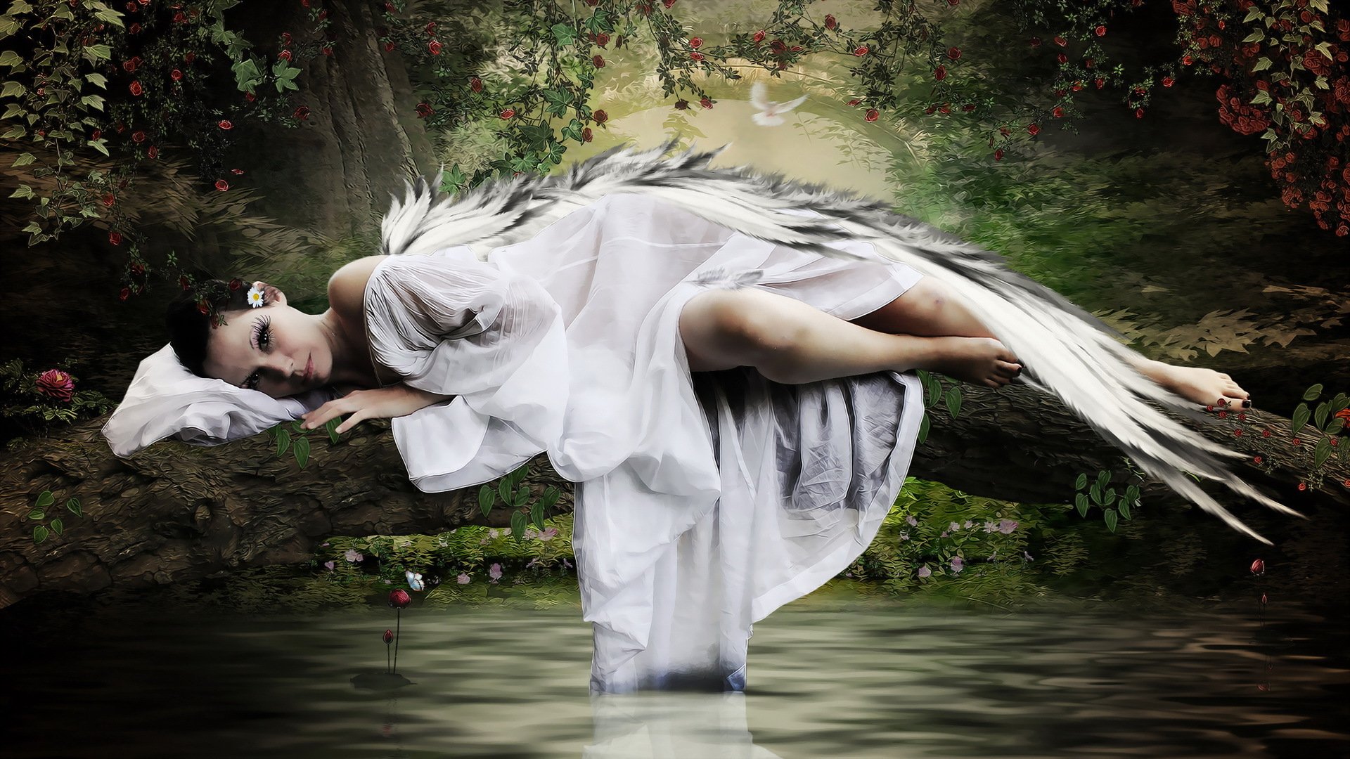 A girl in a beret black and white image on a red backgroundA girl in a beret black and white image on a red background