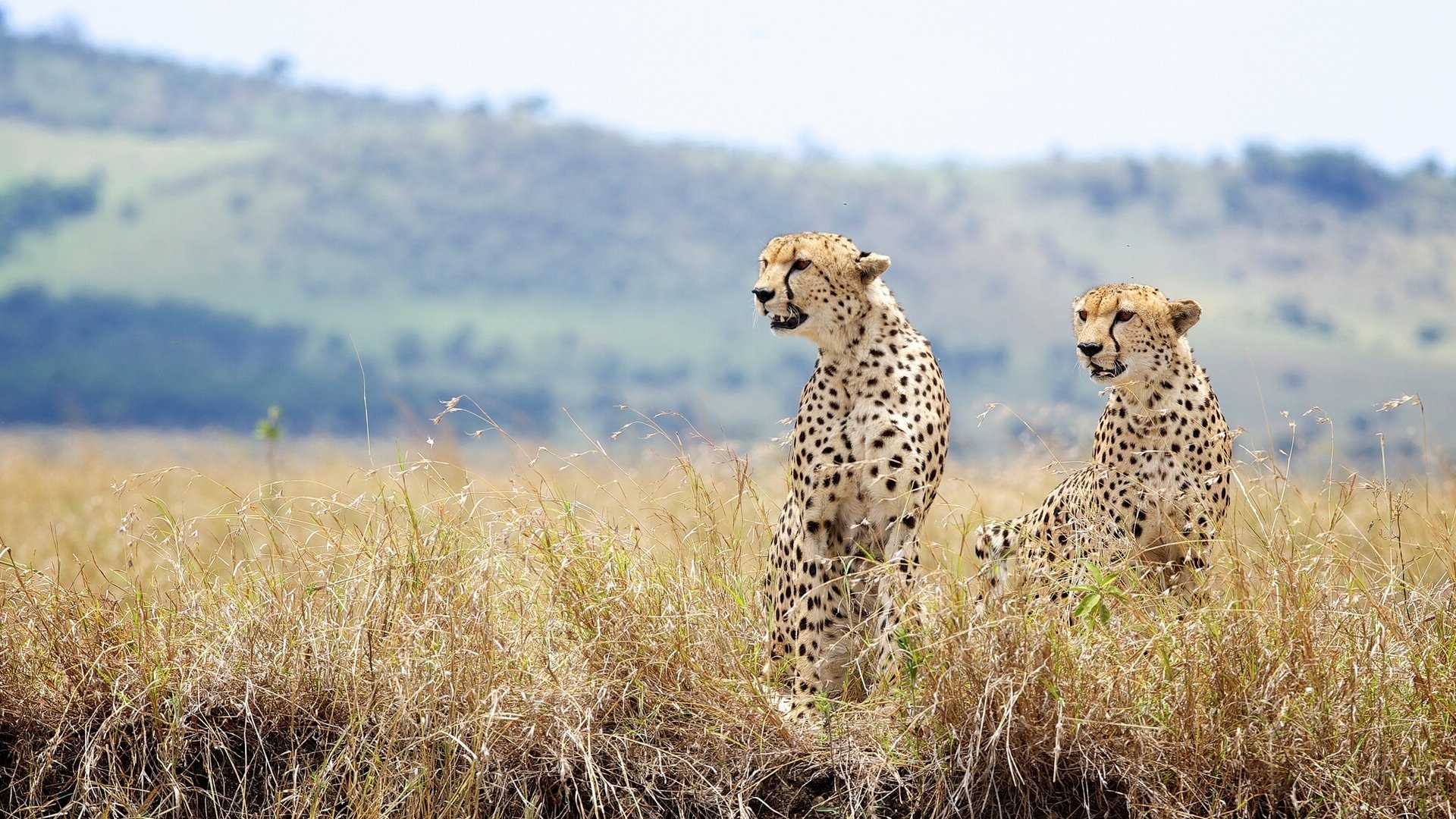 Two wild cats look into the distance