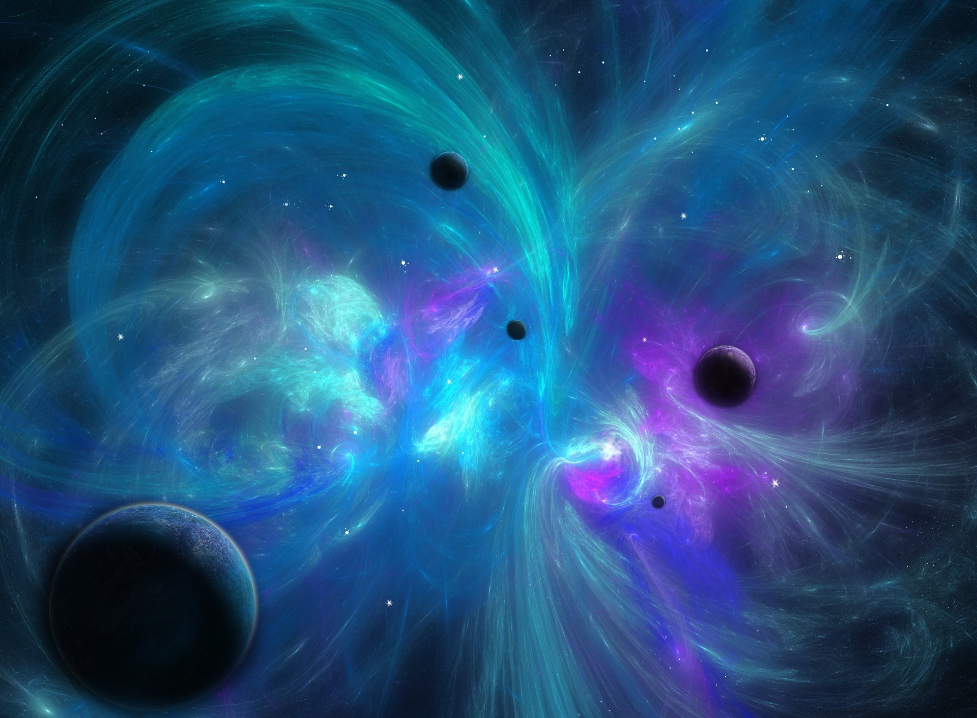Saturn against the background of an infinite galaxy