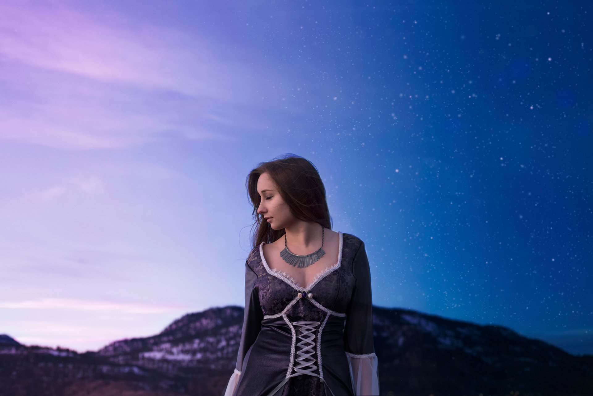 Deep cleavage on the background of mountains