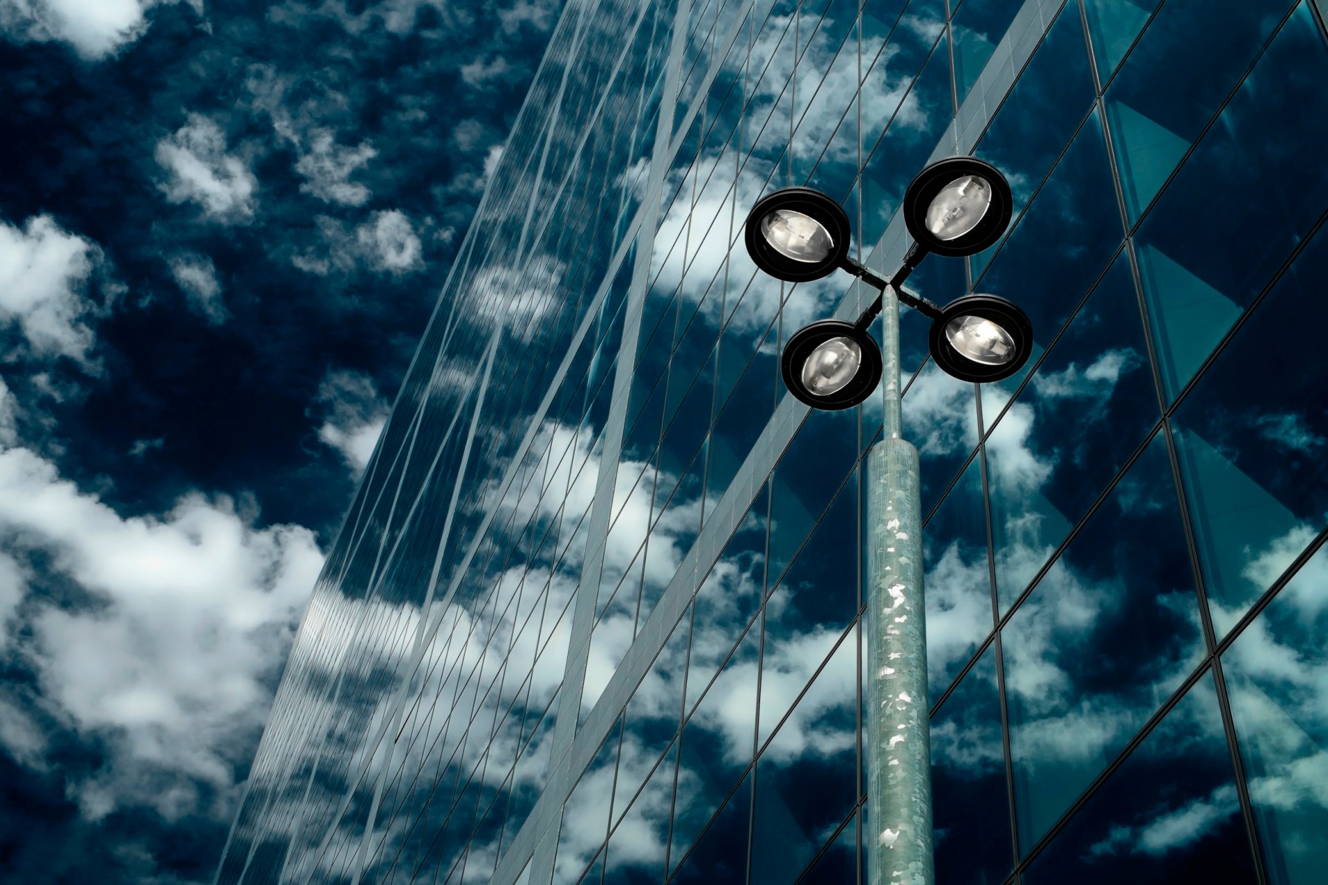 A building with a mirror and a lantern