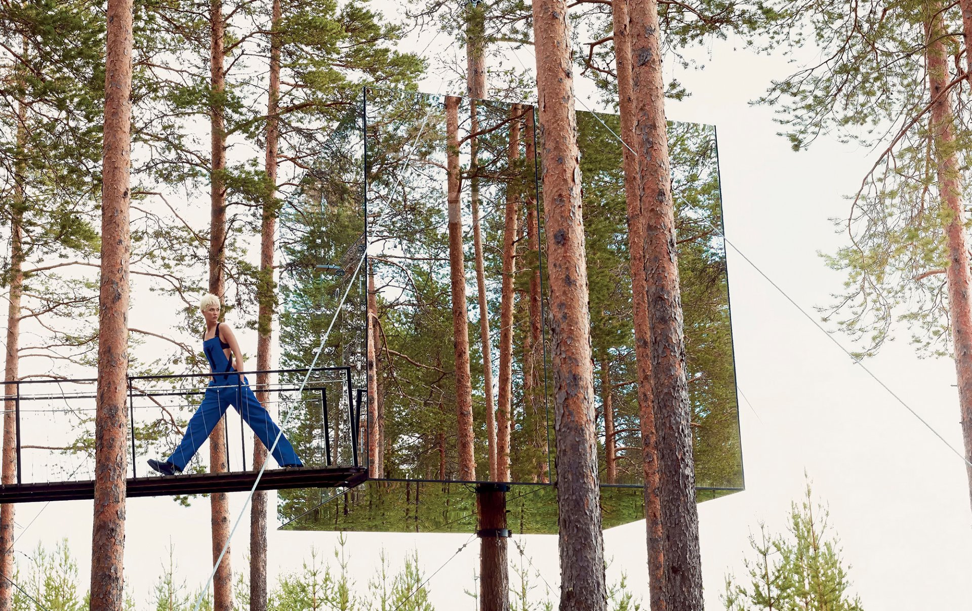 Photo shoot in the pine forest on the bridge