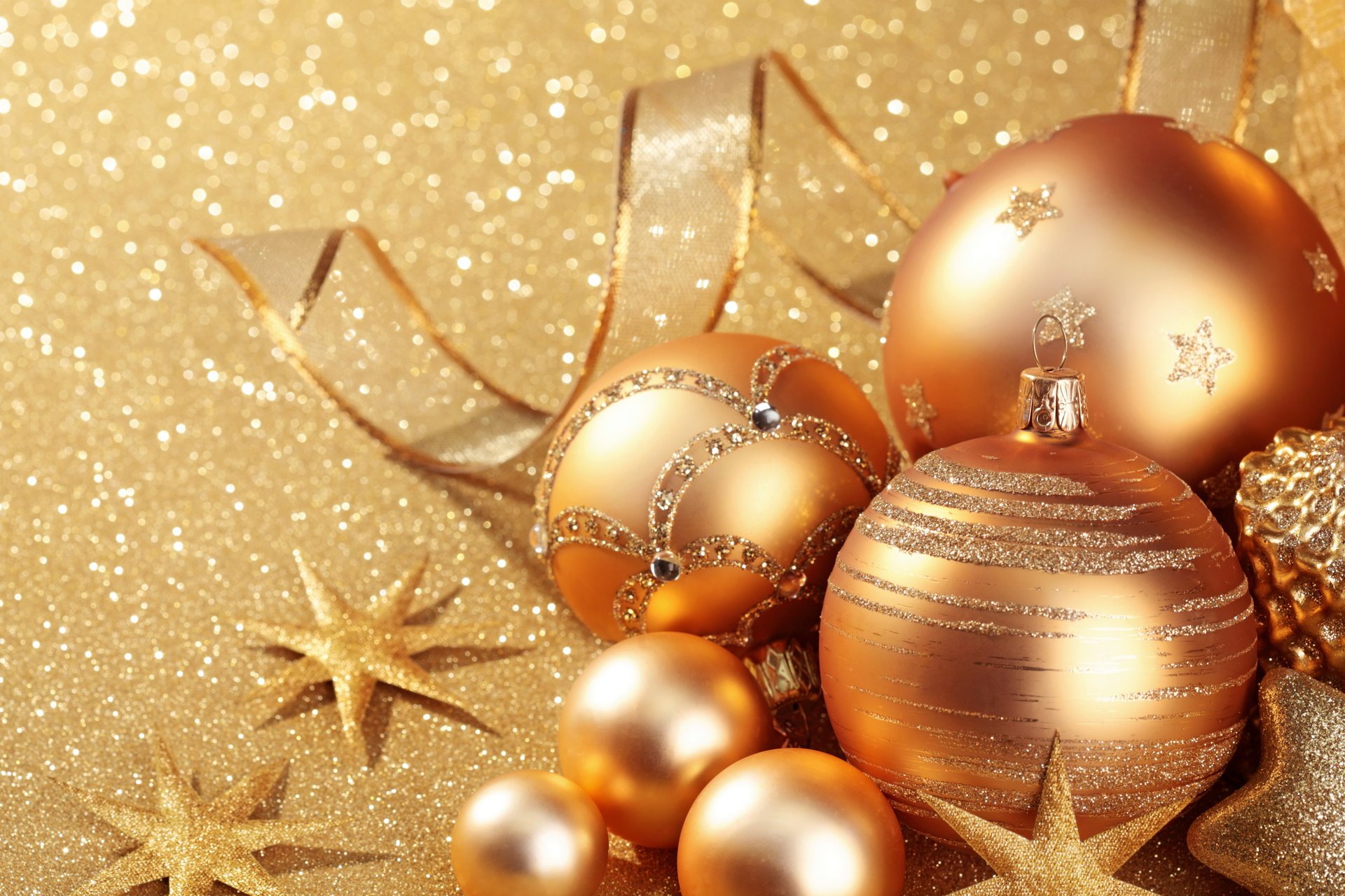 Spruce branches and golden balls on a bright background