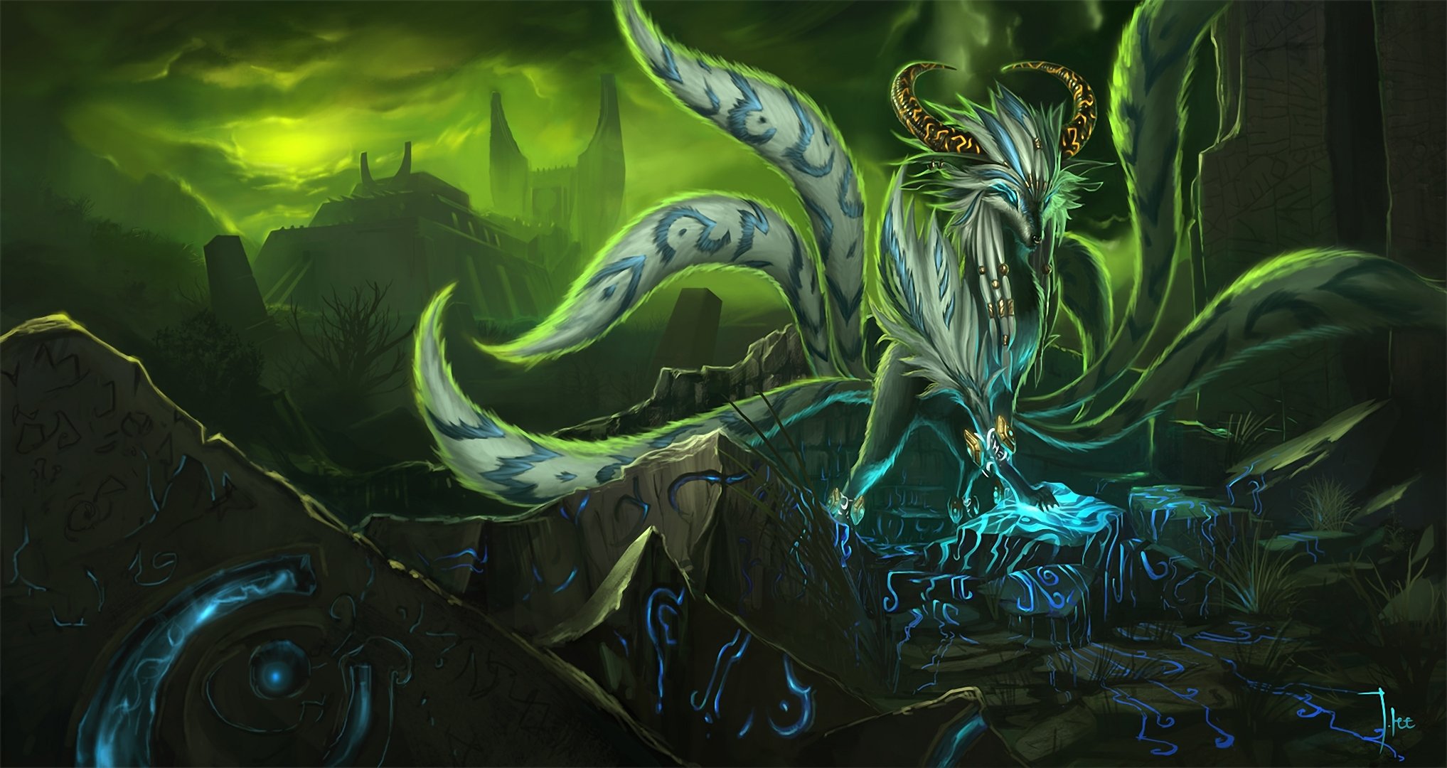 A beautiful girl with blue skin and white hair, a magical girl with a terrible forest, a witch girl in a terrible forest, an ugly magical woman with a crystal