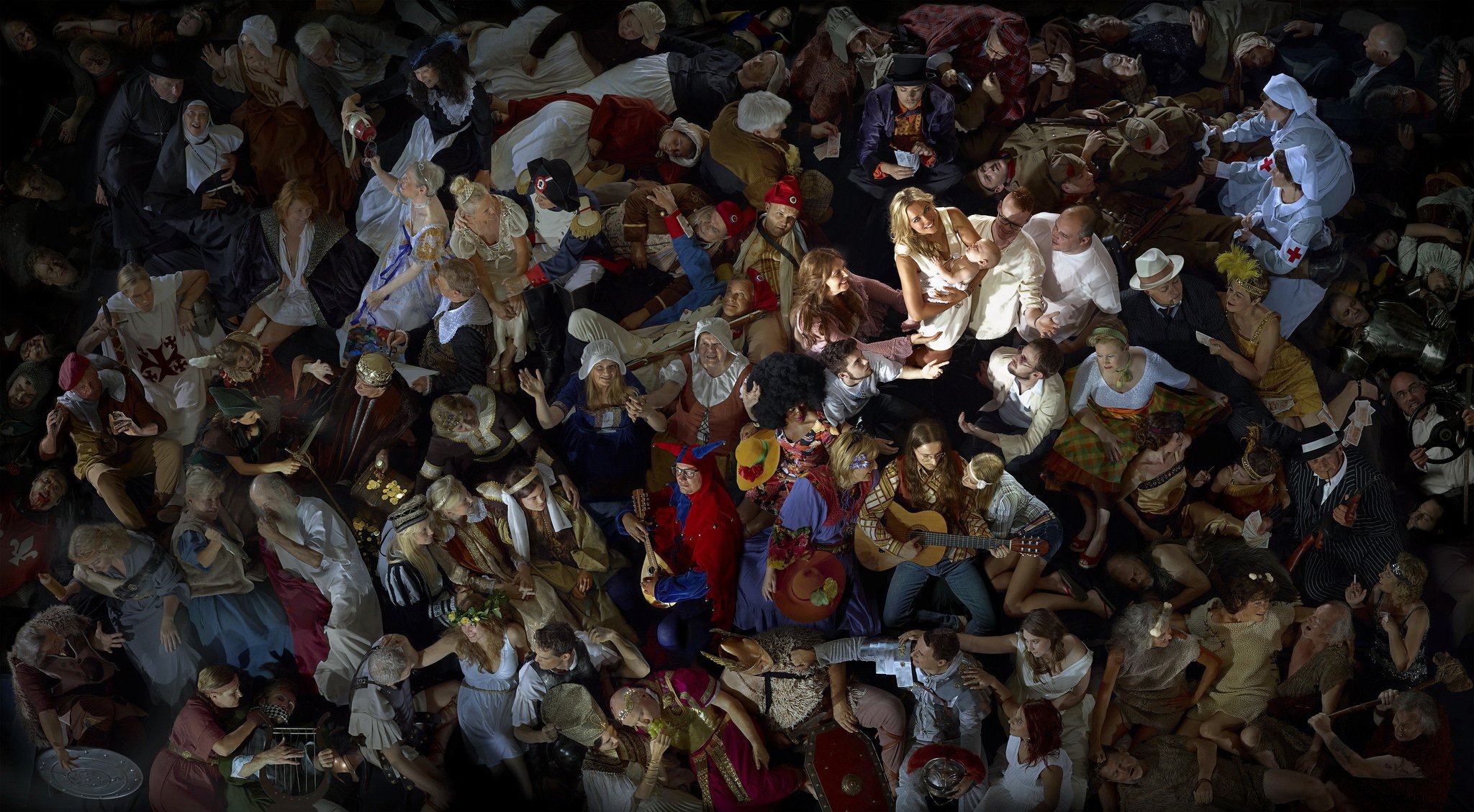 Atmospheric tea party with a book, sweets and the Eiffel Tower