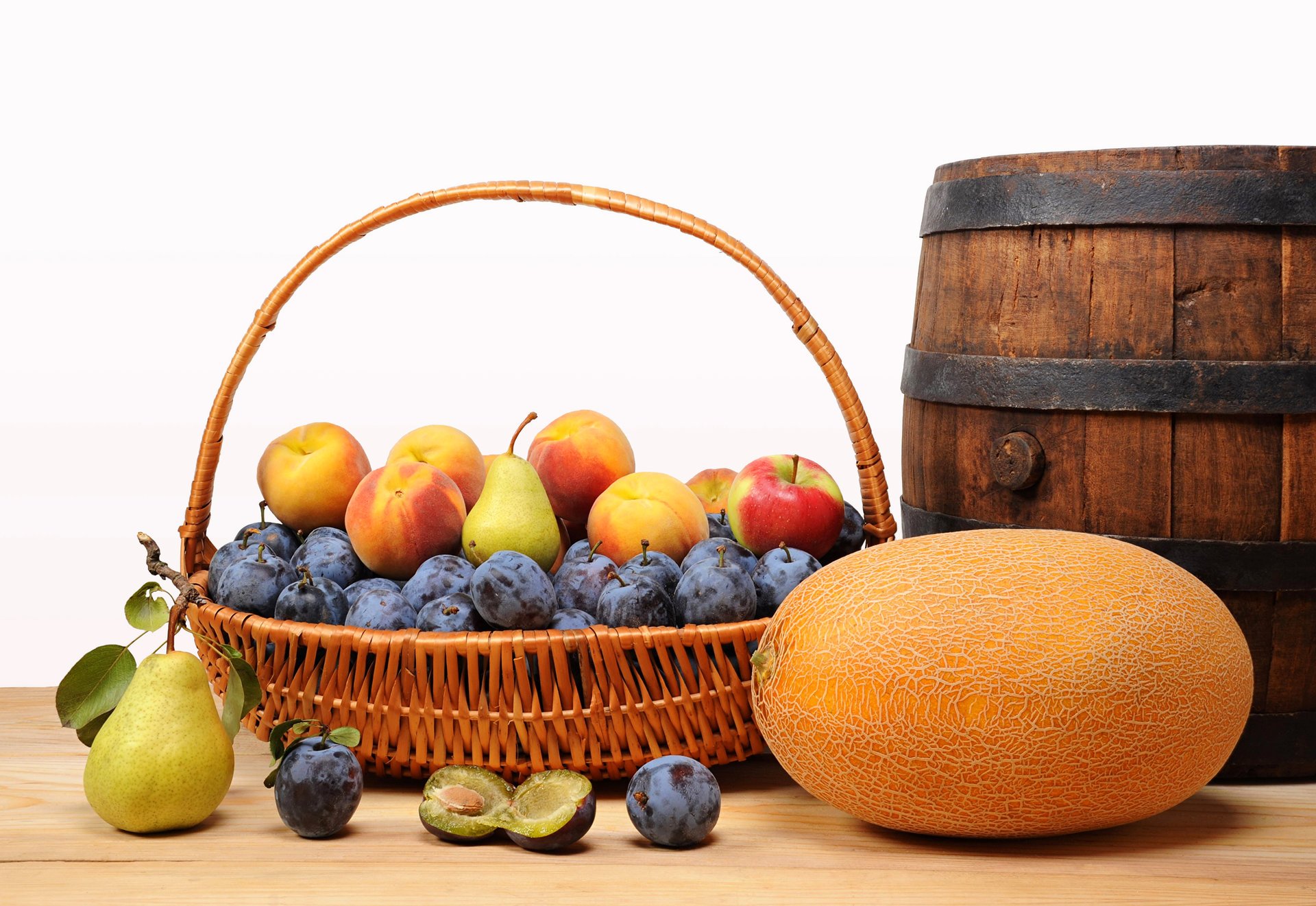Glasses of wine, grapes, pomegranate on a barrel in nature