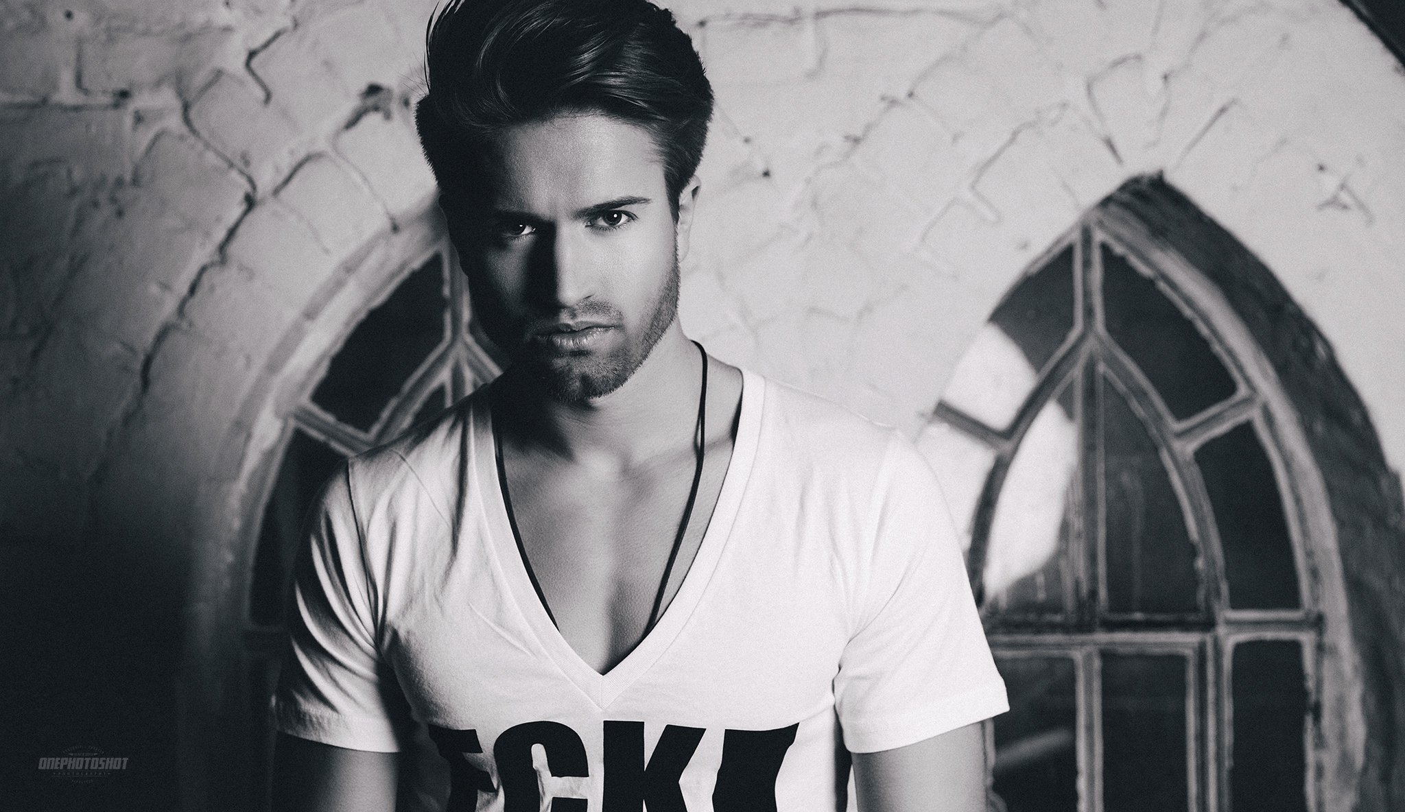 A handsome man with an unshaven beard