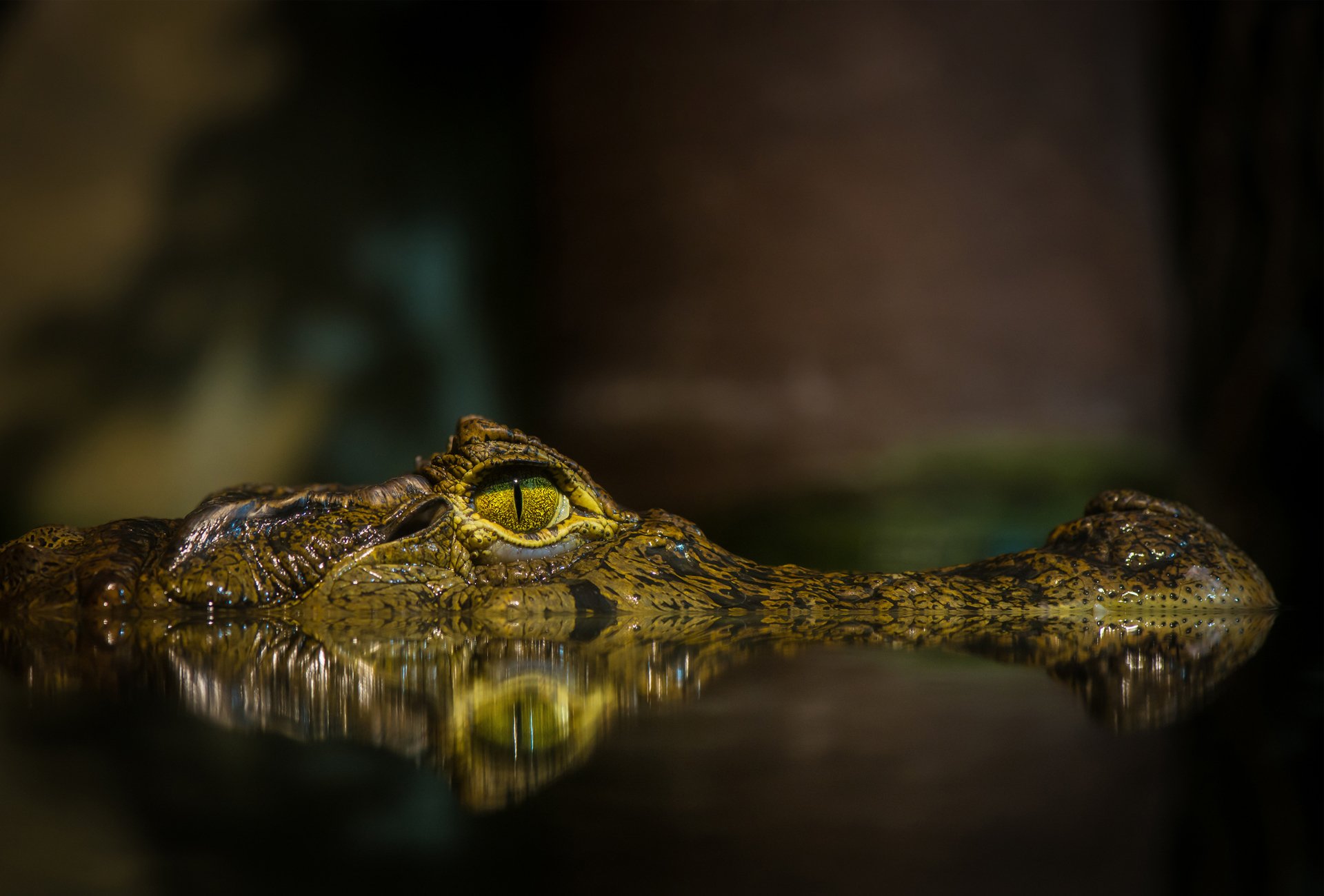 The cat lies and winks with one eye. The cat opened his mouth slightly and a fang can be seen