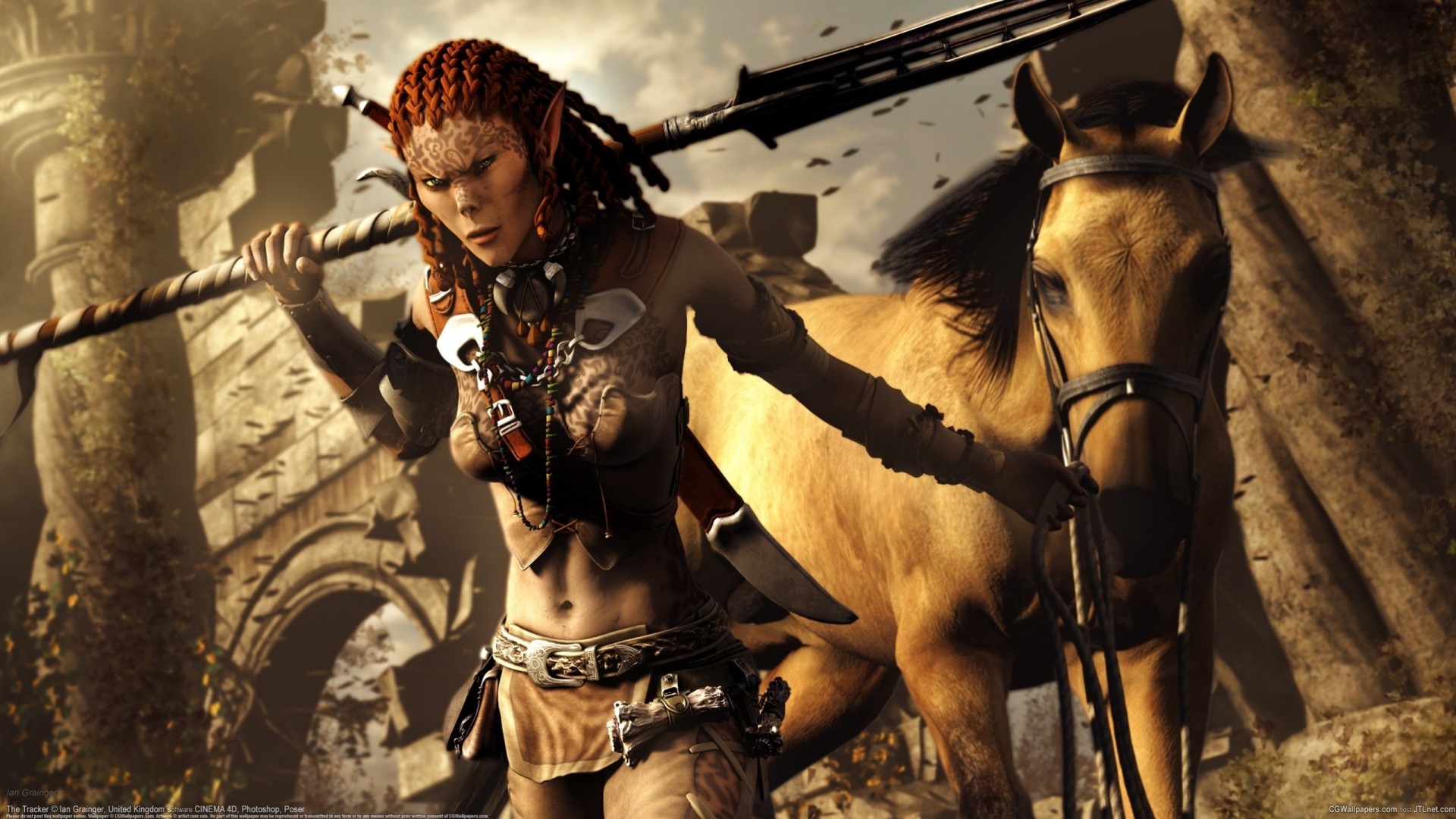 Silhouette of a cartoon warrior with a spear on the background of the moon