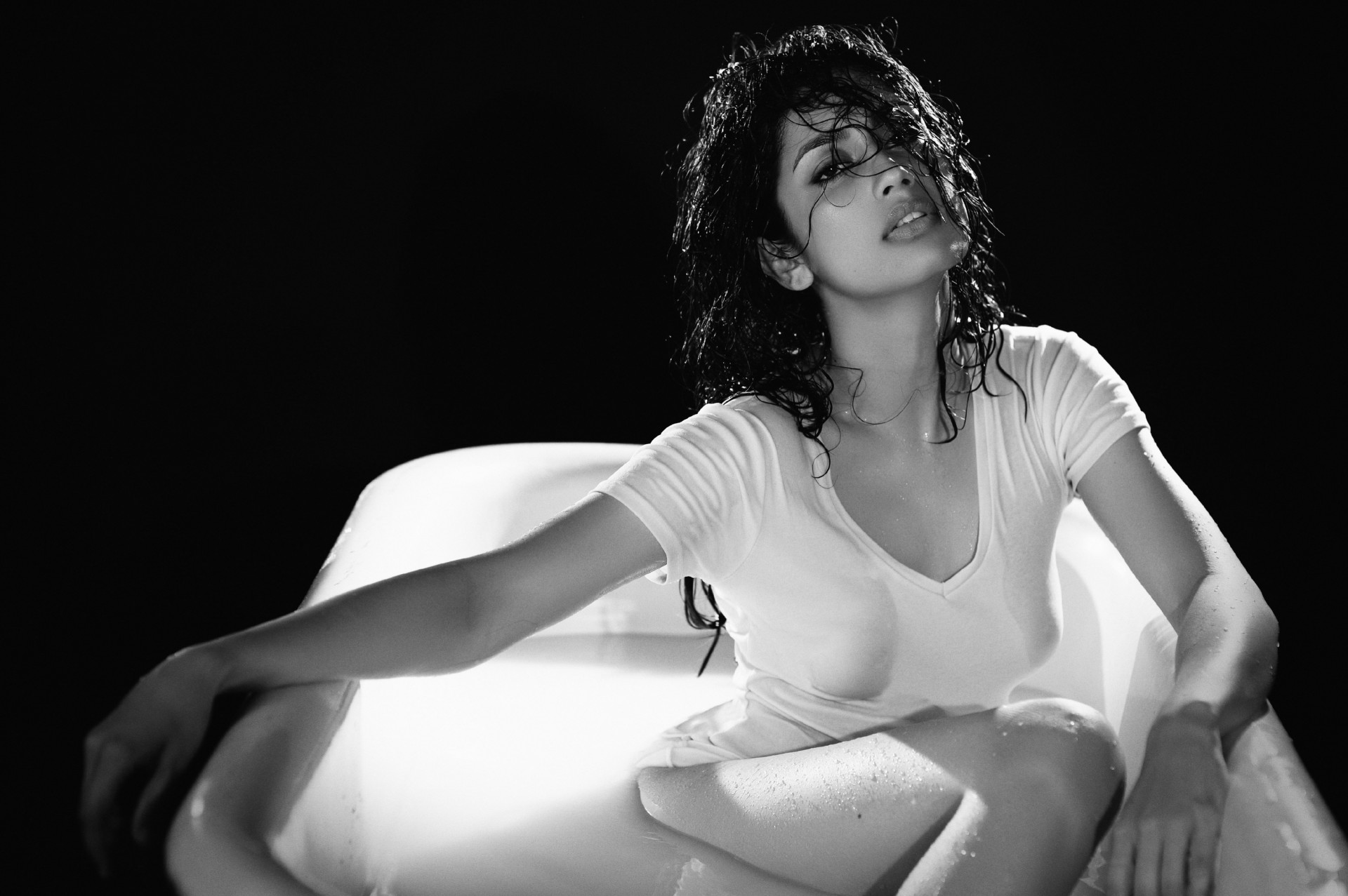 Sensual girl froze in the tub