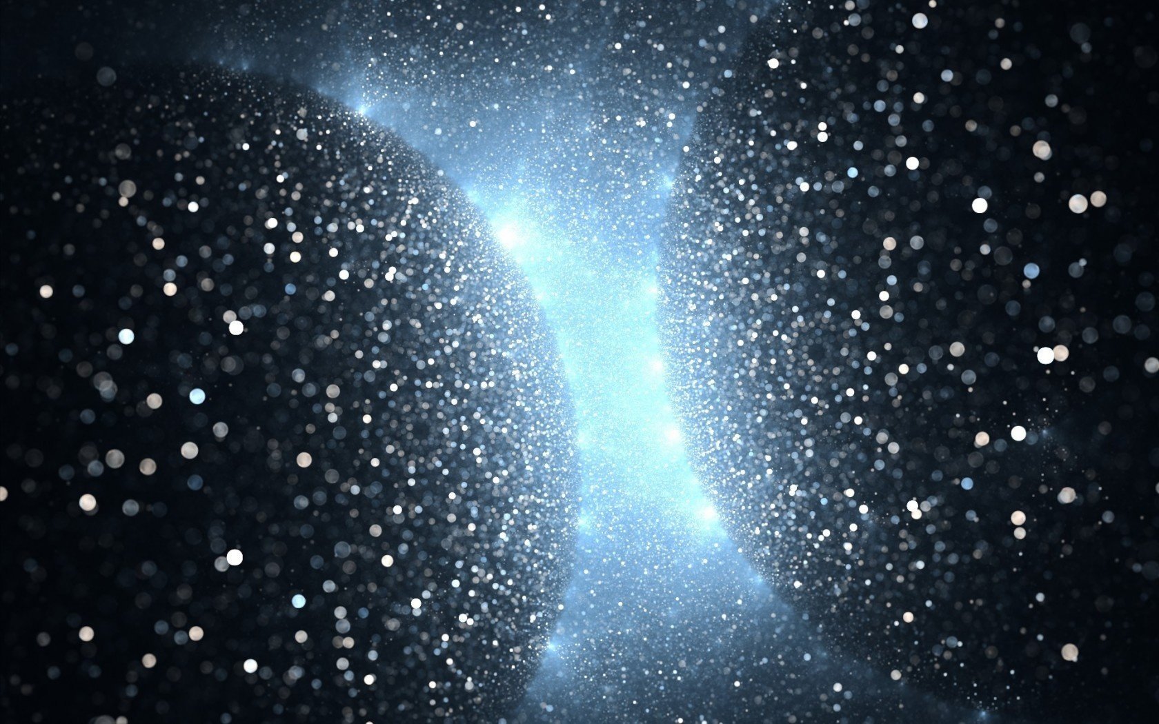 A girl is sitting in a shopping cart from a shopping center on the seashore