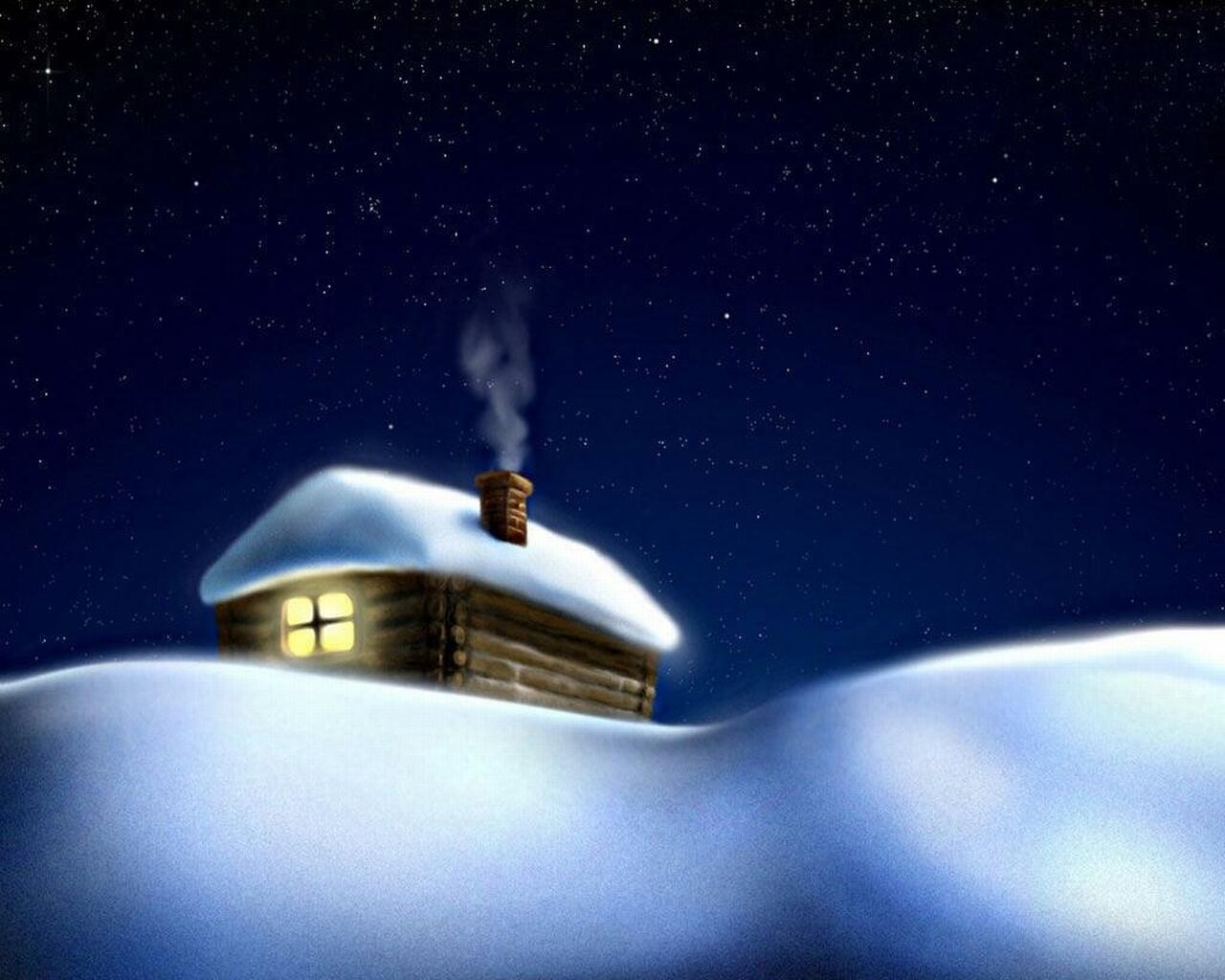 Winter. a house in the snow smoke comes out of the chimney in the form of a horse