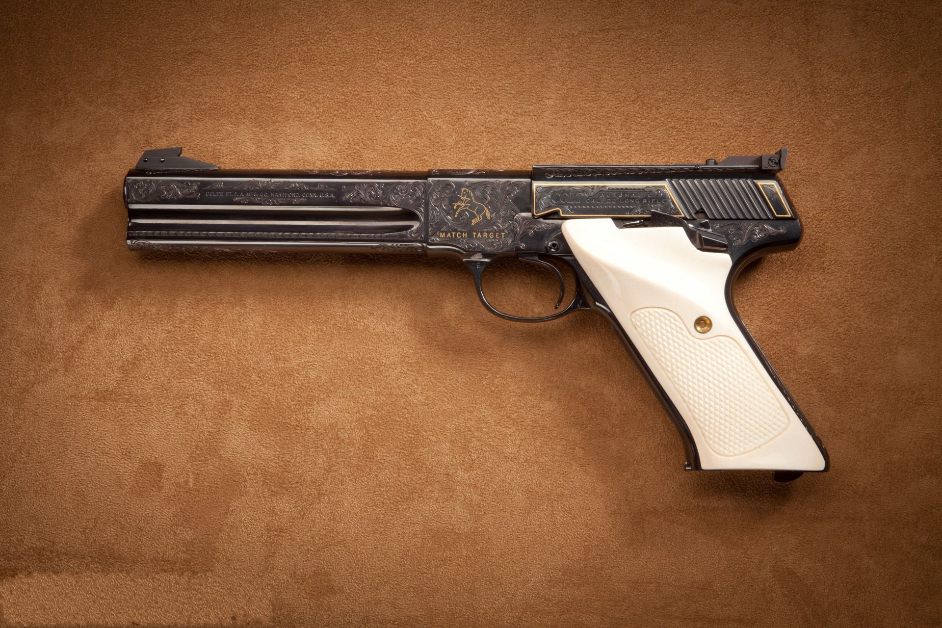 A beautiful pistol with a white handle