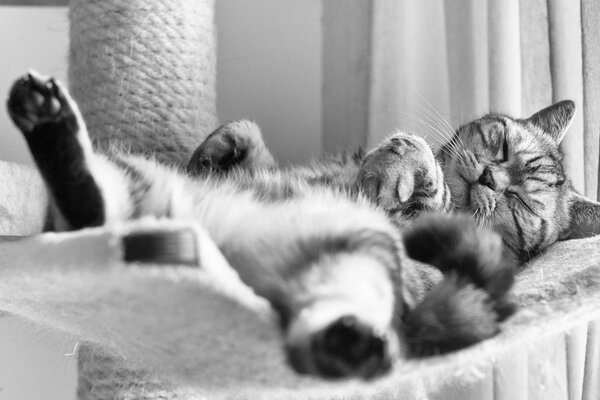 A gray cat with yellow eyes is lying and a suitcase with a British flag is lying next to it