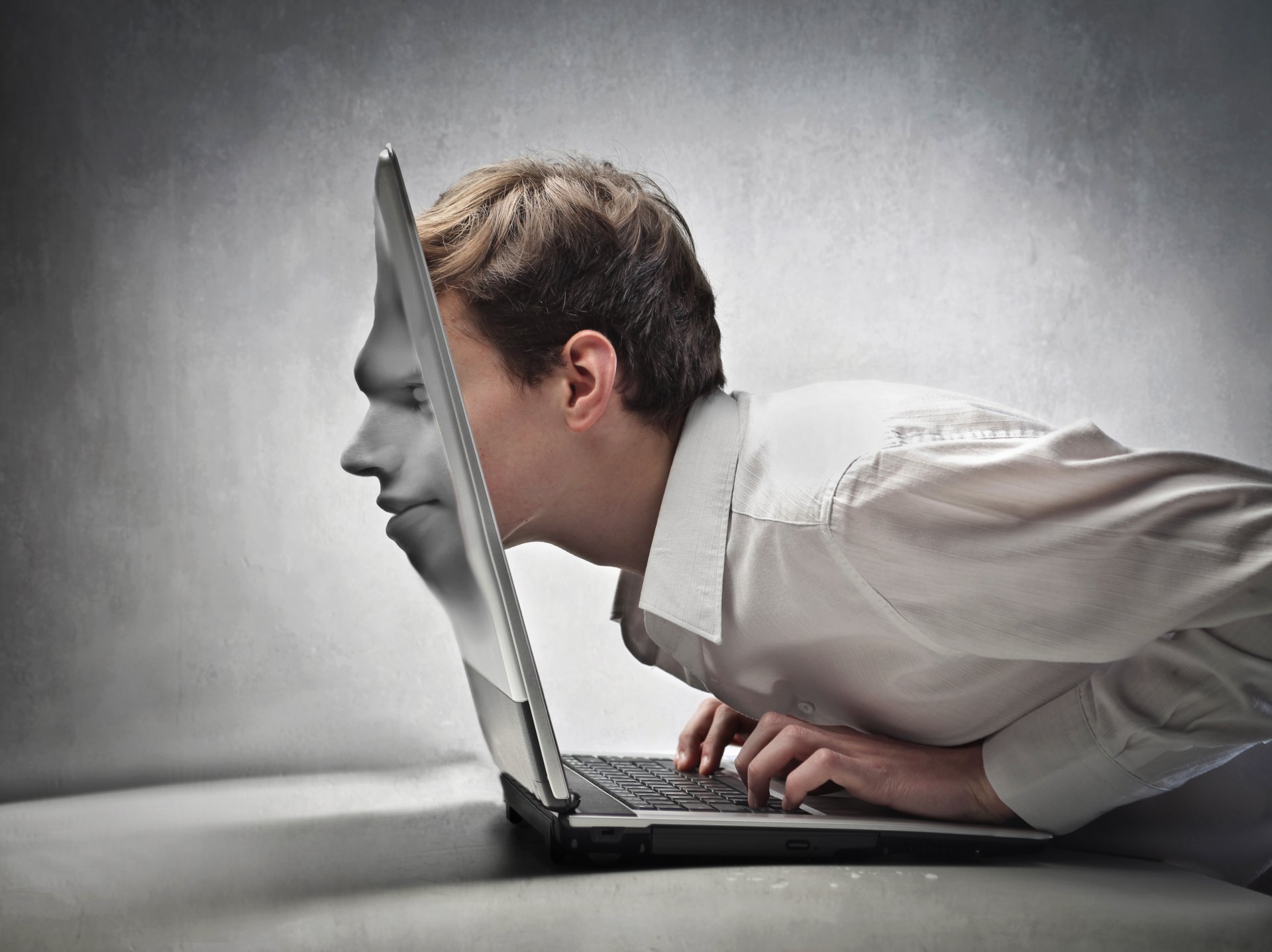 Creative photo of a man's face in a laptop