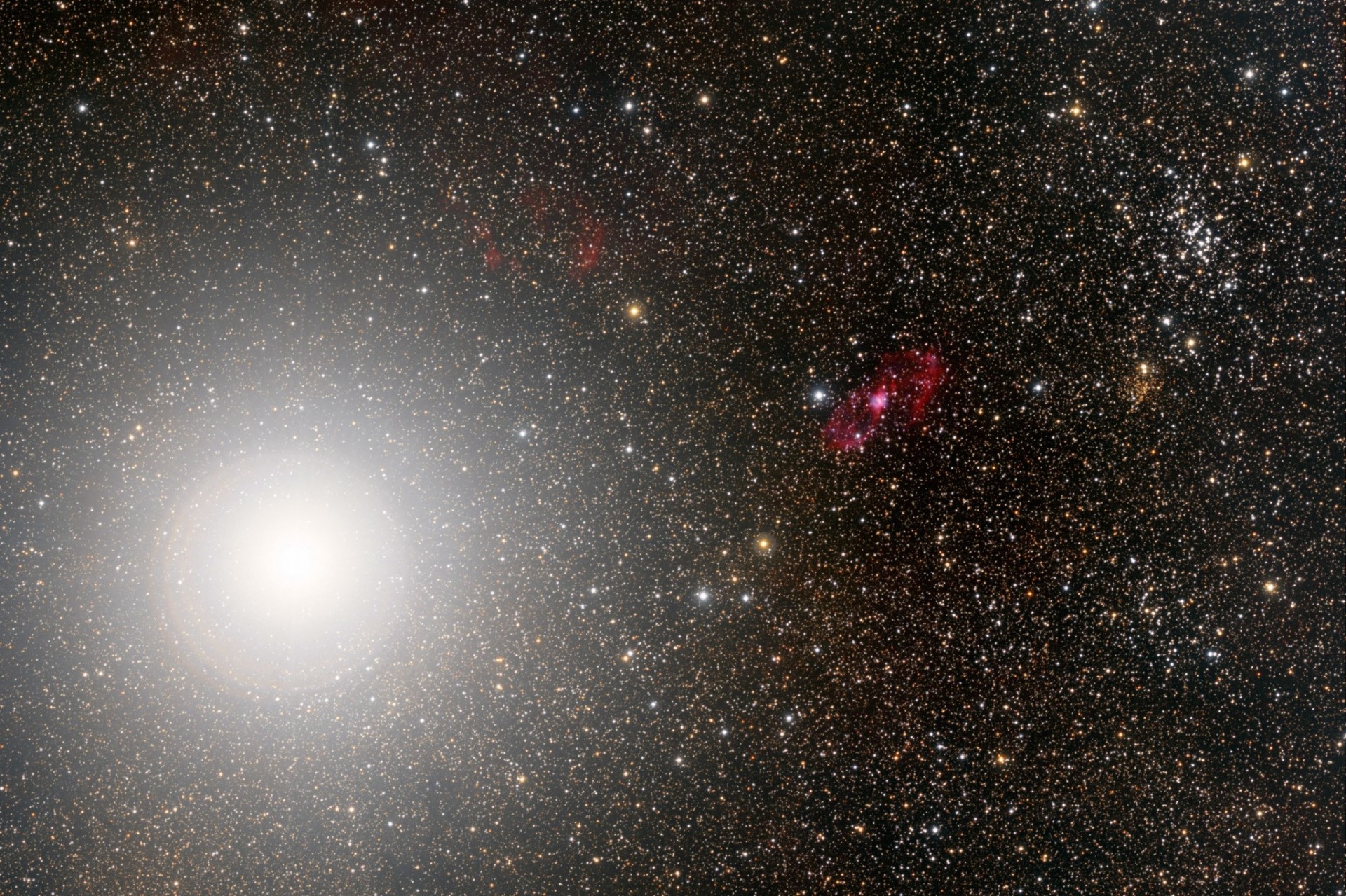 A red nebula against the background of the stars of the universe