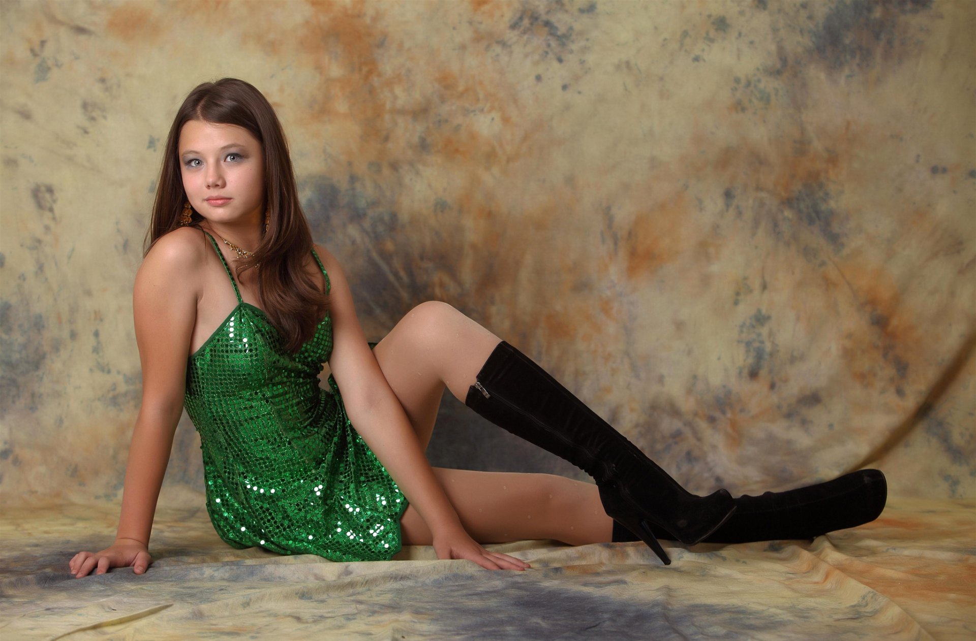 A girl with long hair in a short dress with heels is lying on a car tire with her back against the background of a building