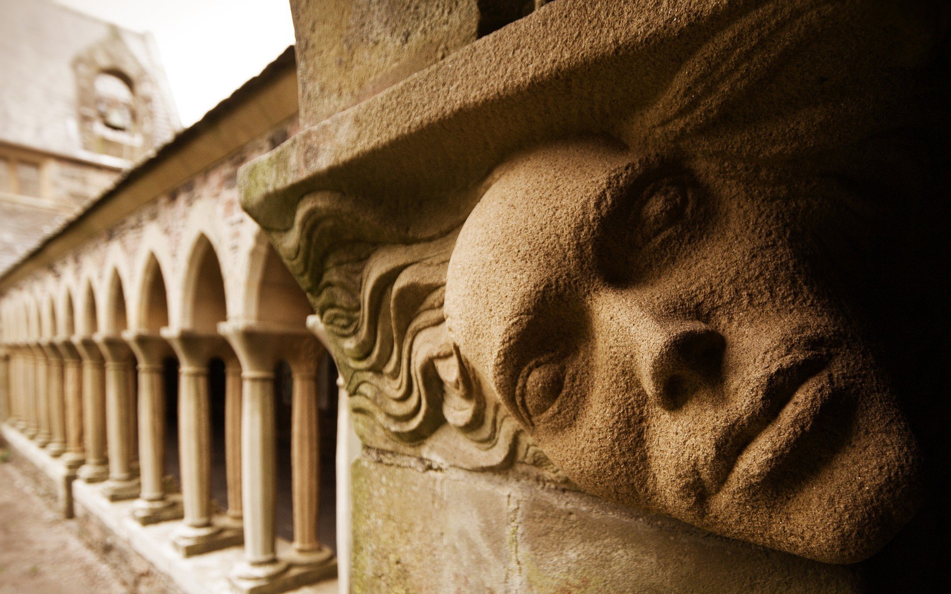 Greek structure with a face and columns