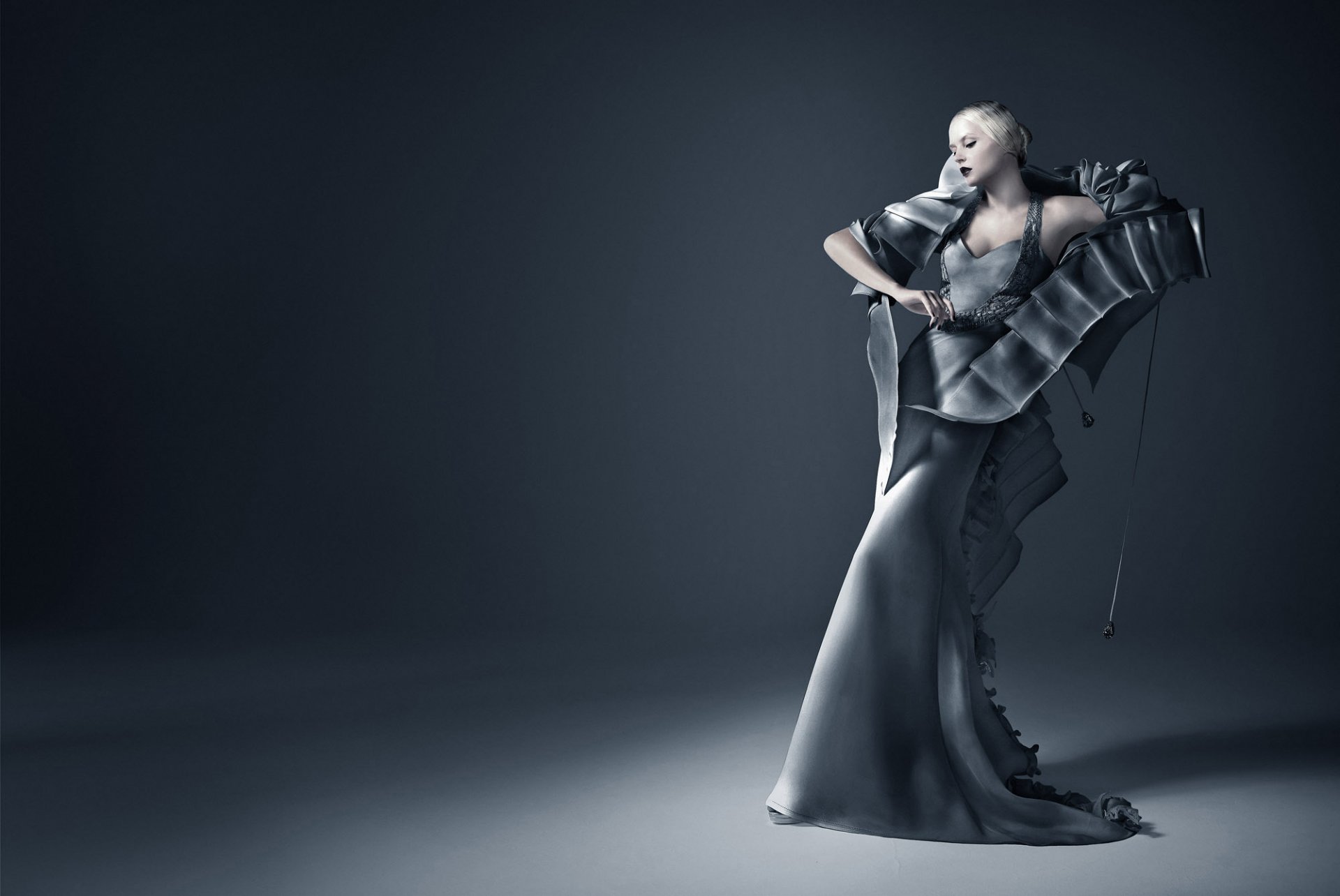 A girl with glasses and a fashionable dress on the background of the Eiffel Tower