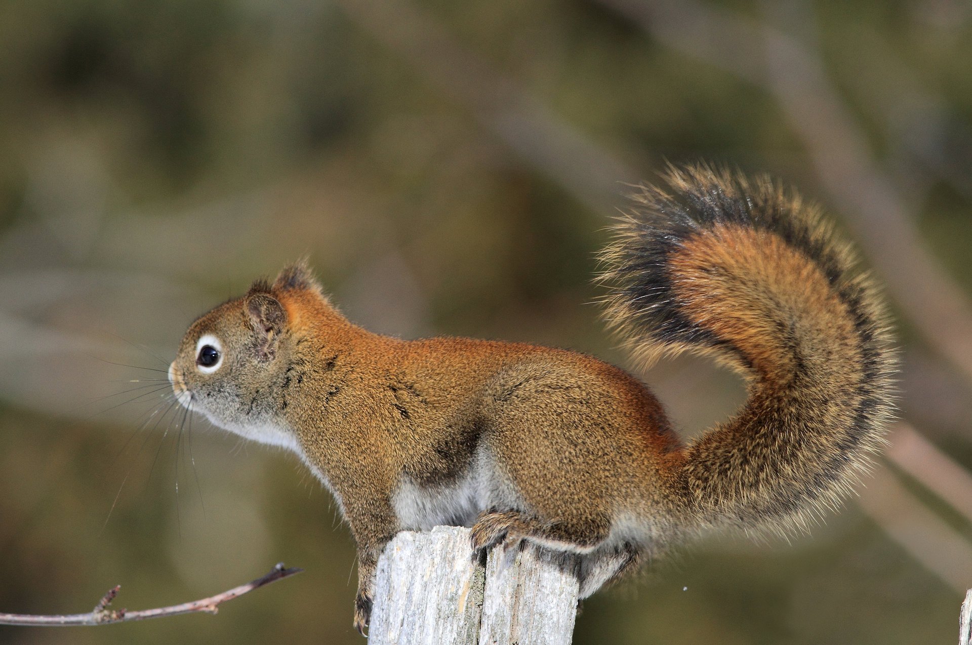 Fluffy squirrel on a small stump