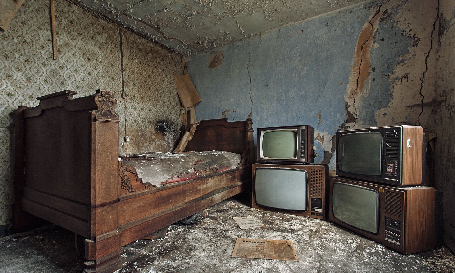 Guest bedroom under the canopy of the pavilion of a country villa, four-poster bed