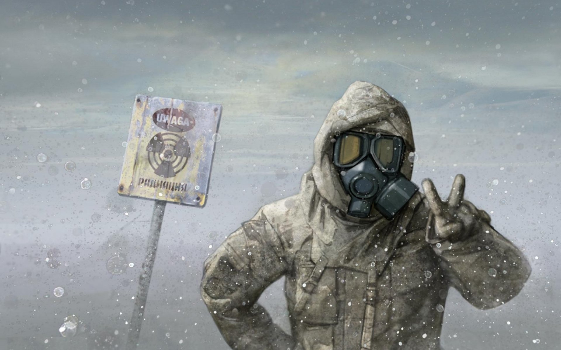 A girl in a policeman's uniform with a gun in her hand makes a stop gesture