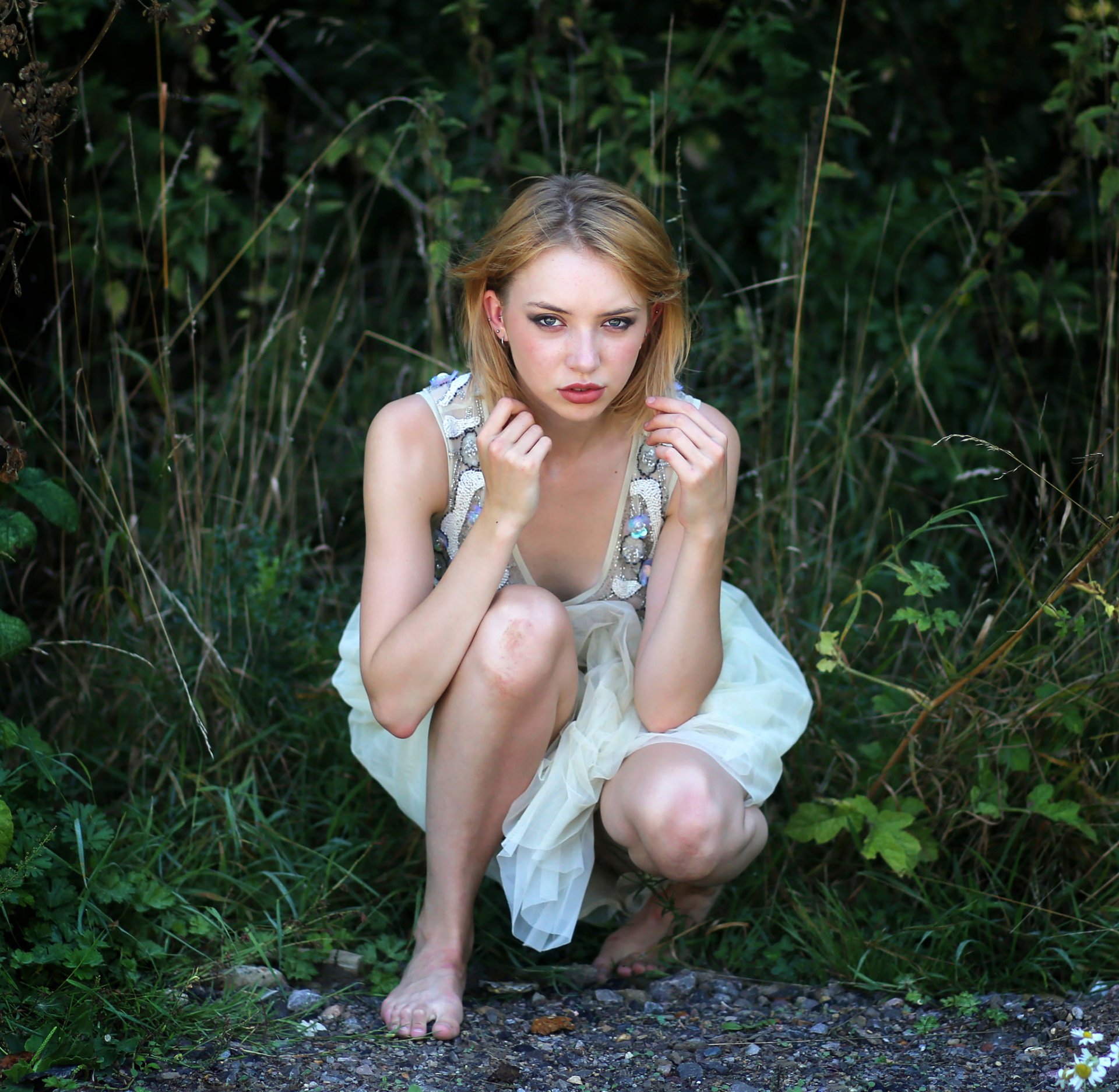 Skinny girl in nature in summer