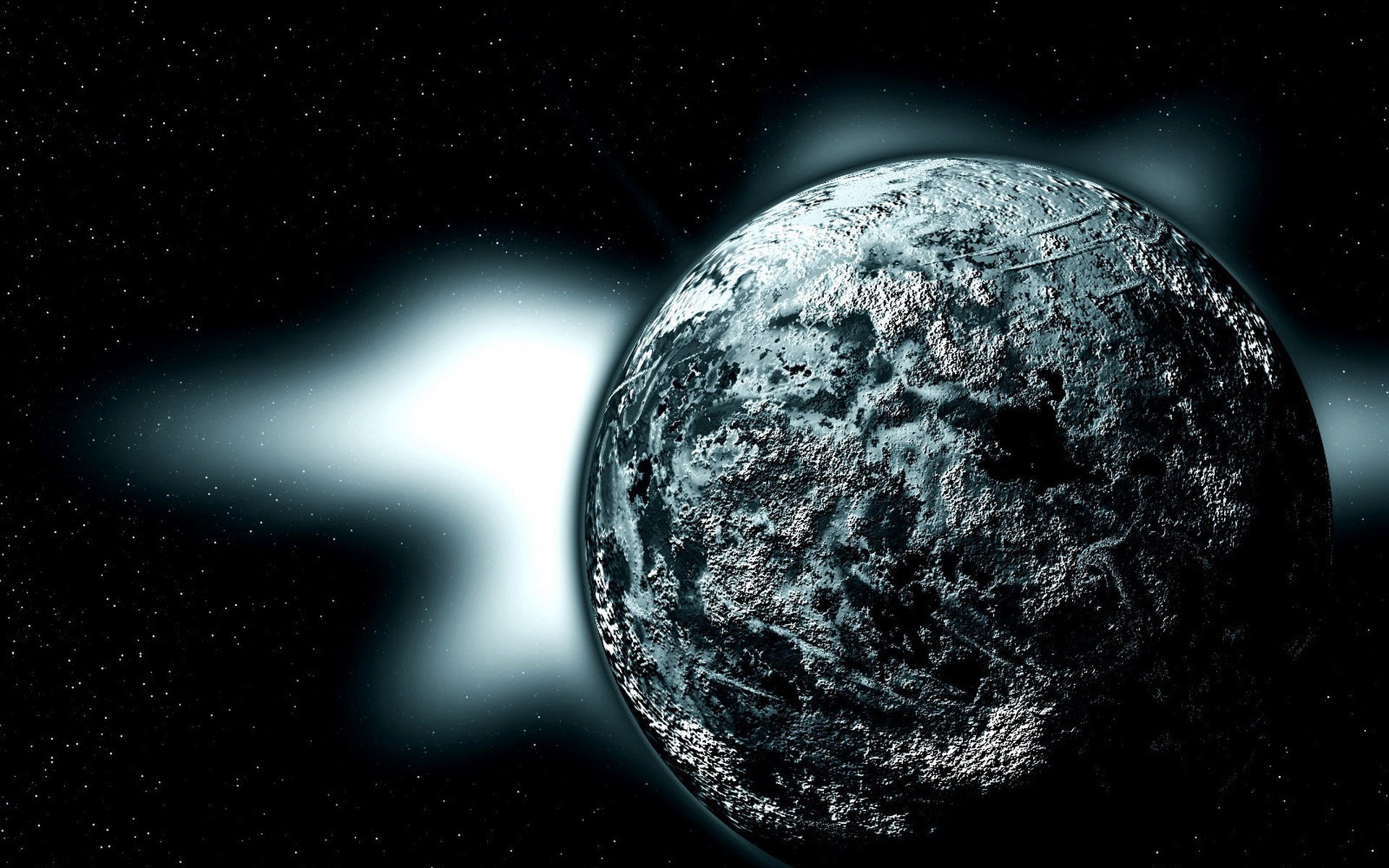 Crater holes on the surface of the planet in space
