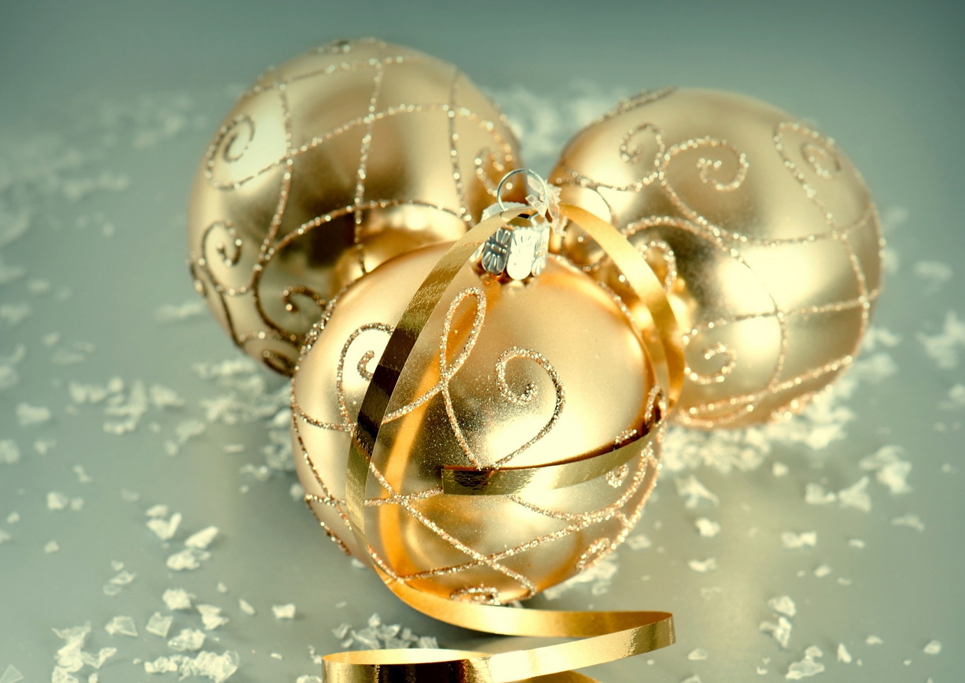 Golden Christmas balls on the Christmas tree. New Year td