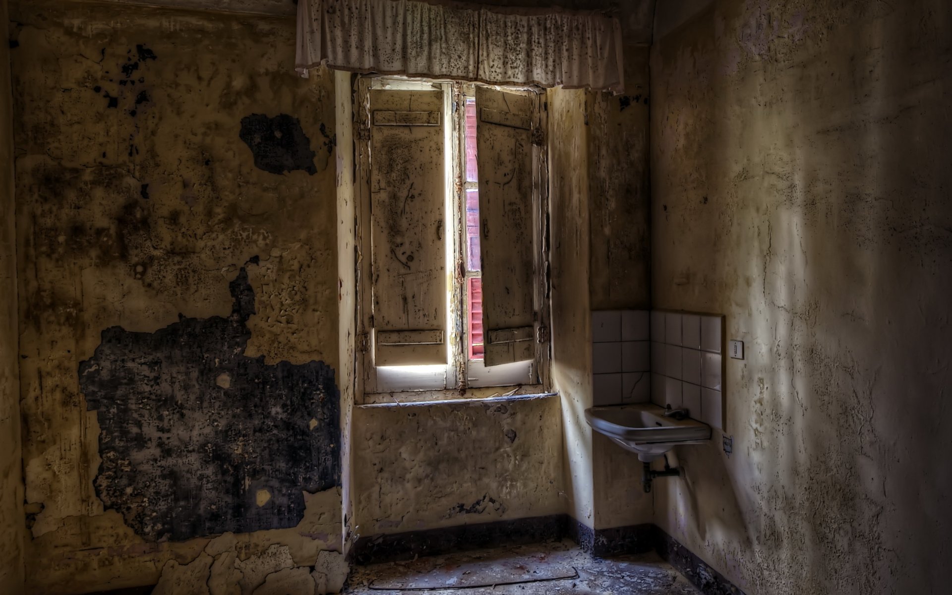 The front of a white Nissan parked on the asphalt against a gray wall with graffiti