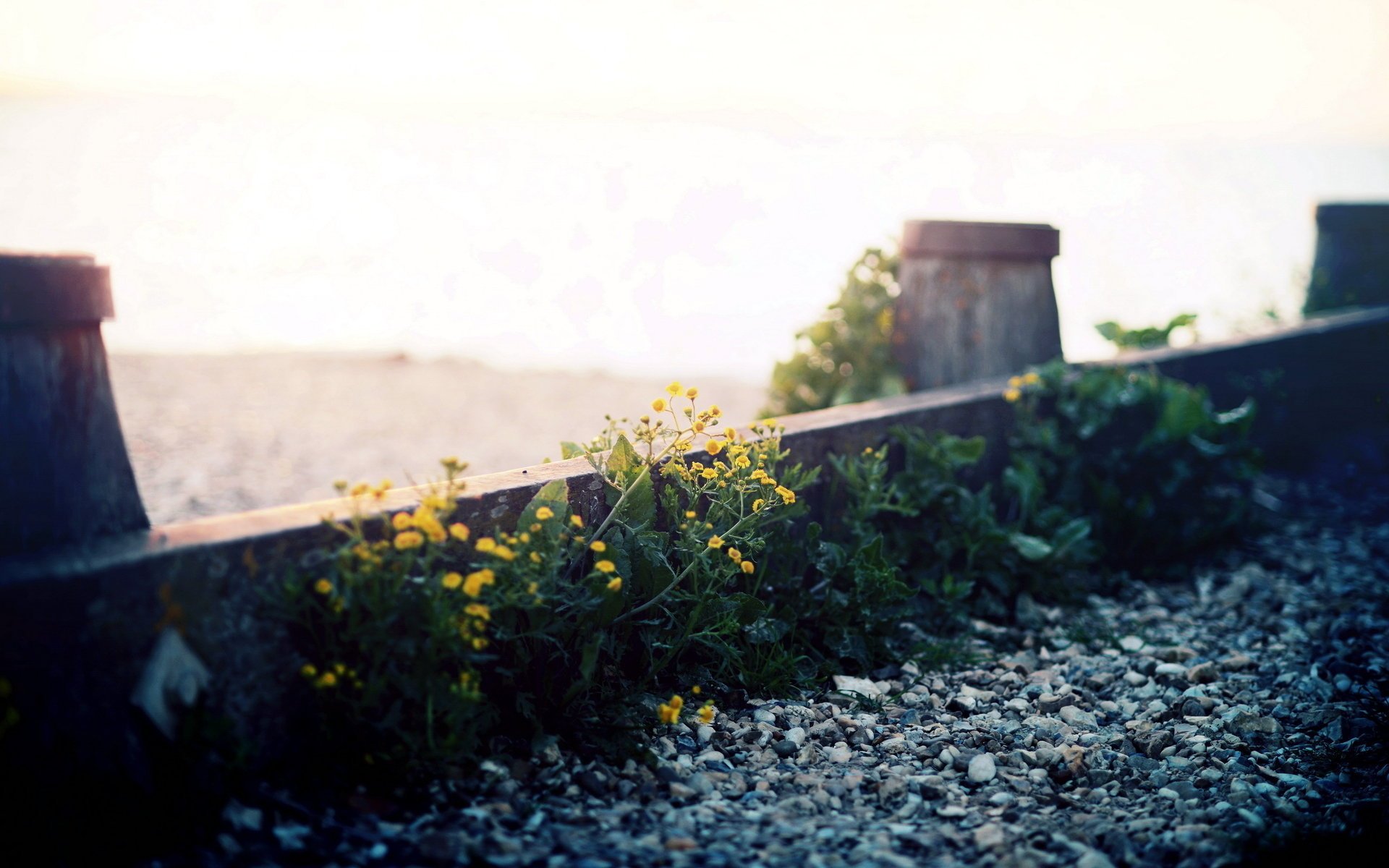 In the field, dandelions have grown in the wind, everything is flying in different directions