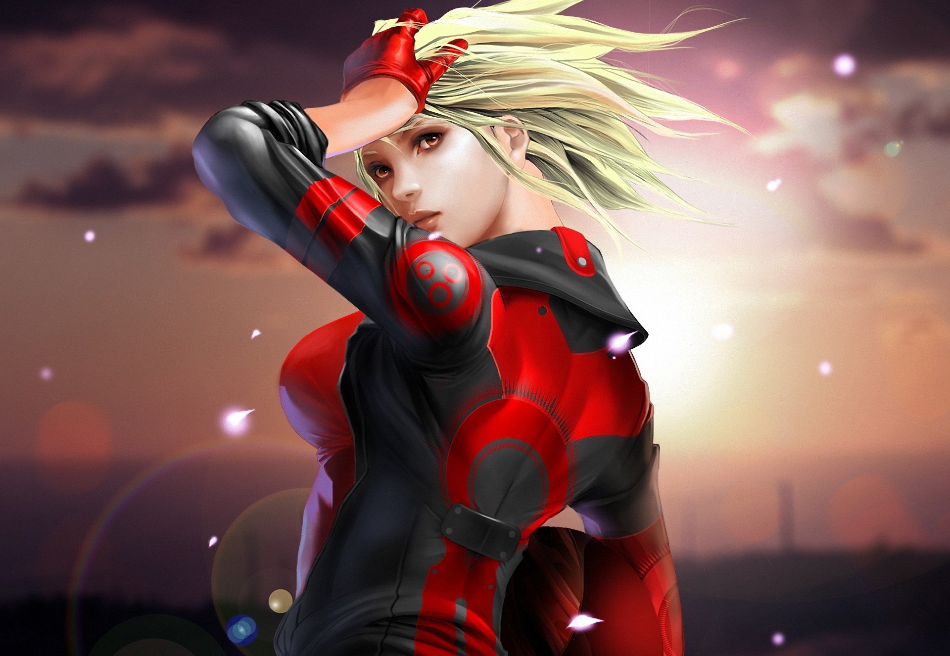A beautiful brunette sailor with a smile and a hand at her head with a striped bracelet