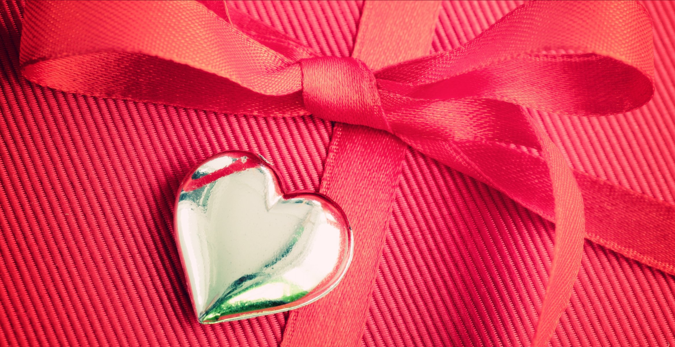 Heart with a bow on red fabric