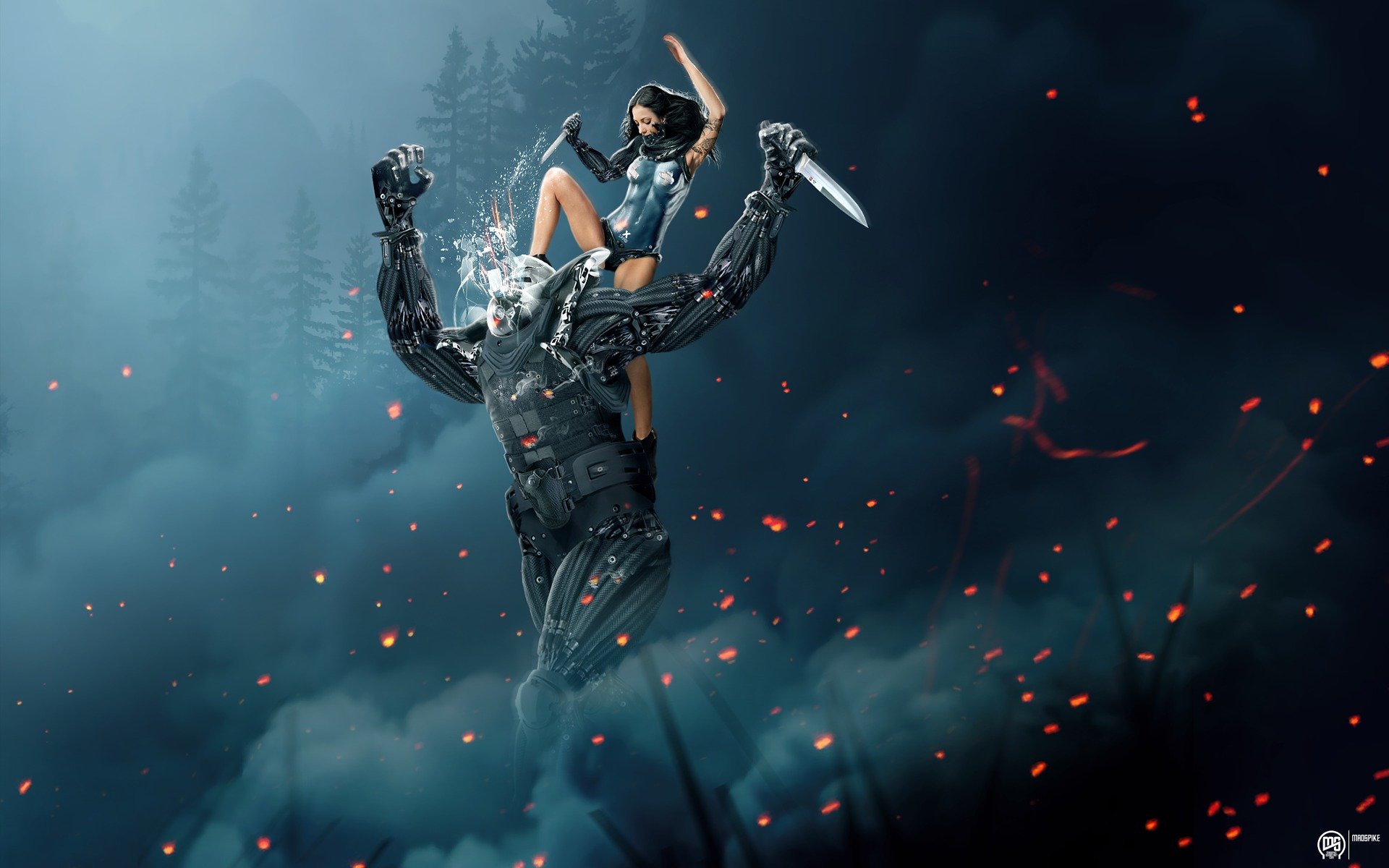 Scarlett Johansson in a fight with robots in the Avengers movie