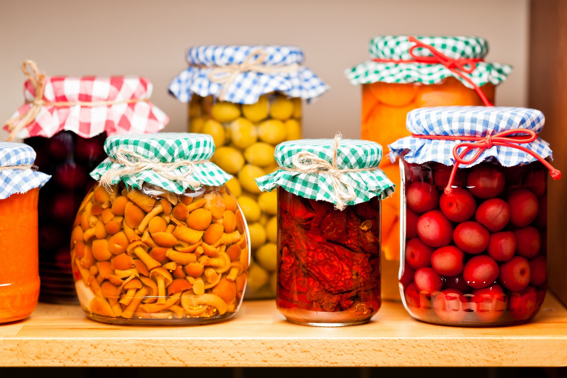 Jars with delicious salted mushrooms