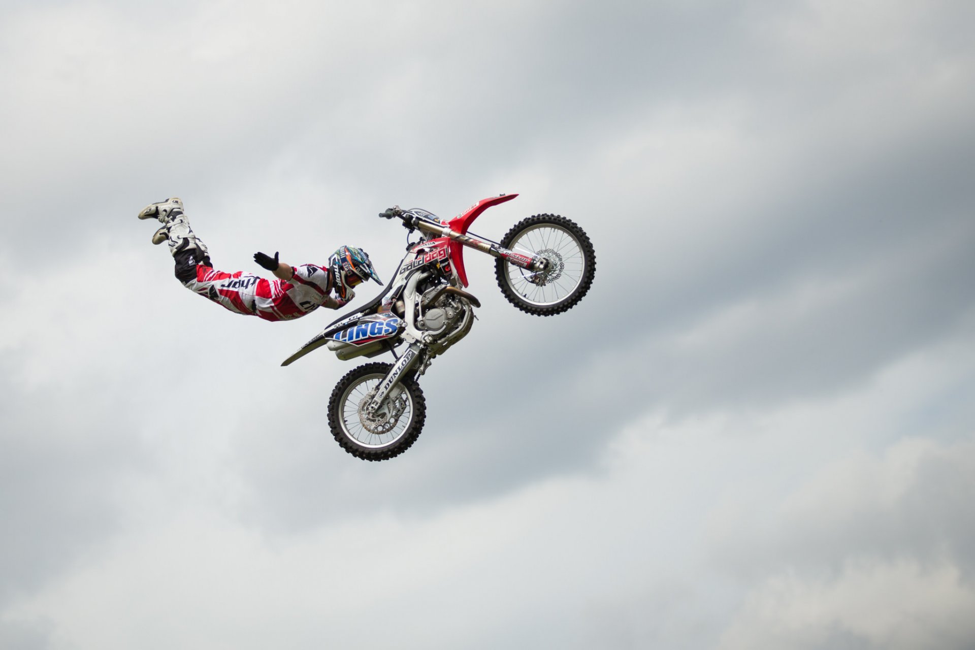 Jump in the sky of a motorcyclist