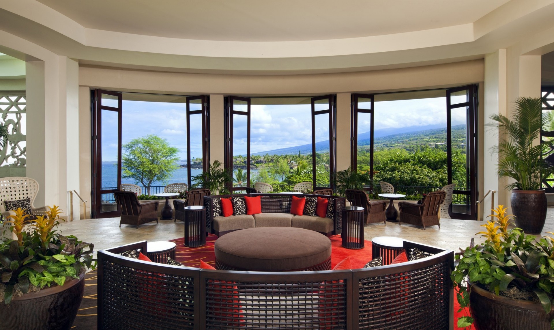 Large balcony with mountain view