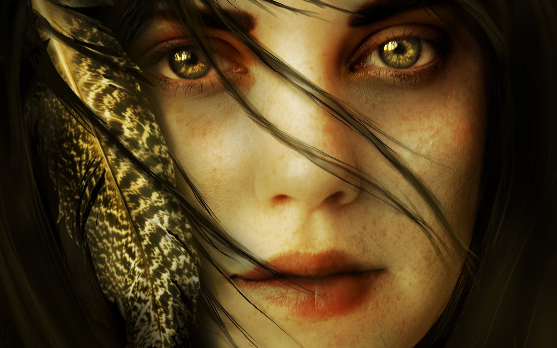 Levushka in a yellow dress poses against the background of ragged wallpaper