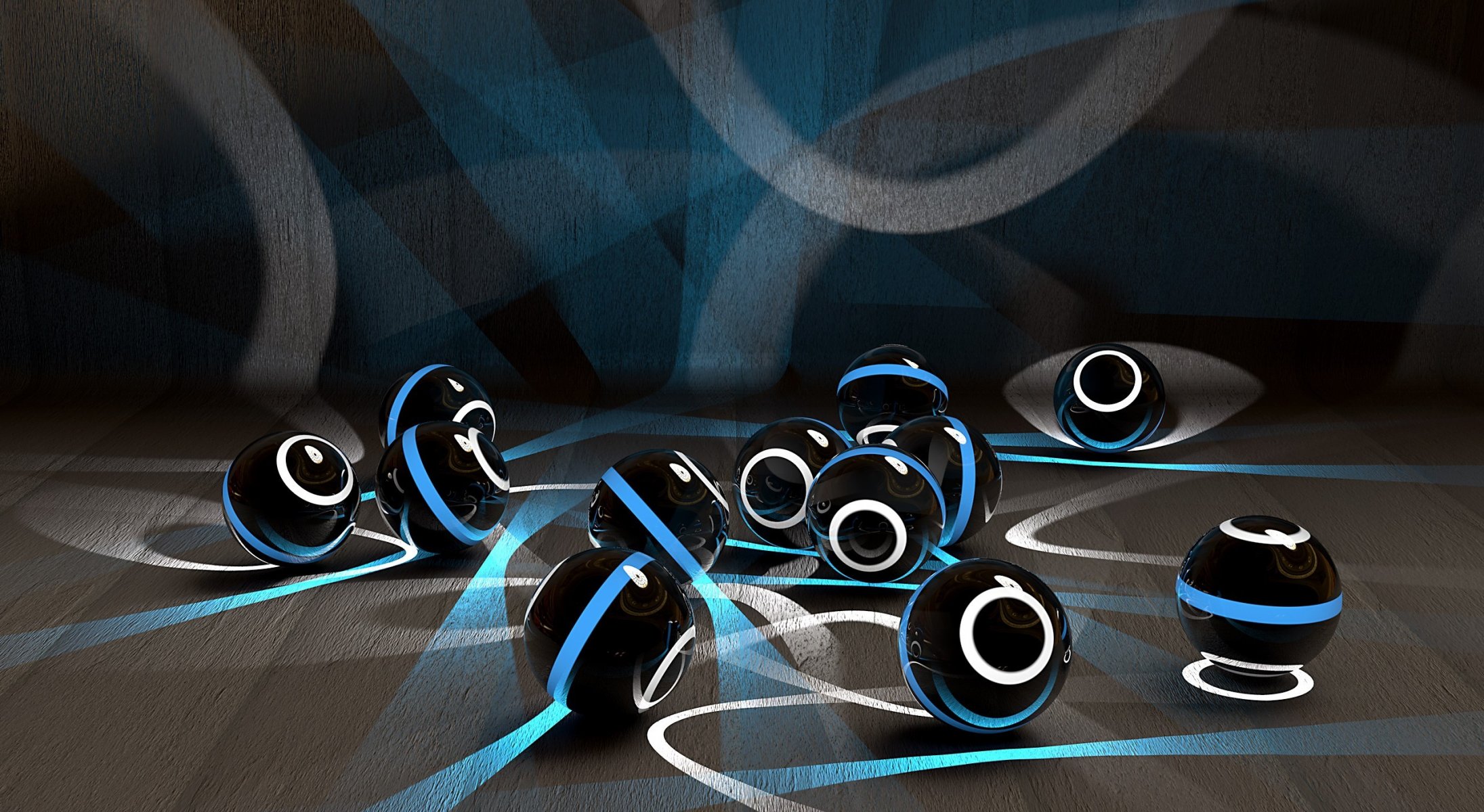 Balls with white rings leave light rays