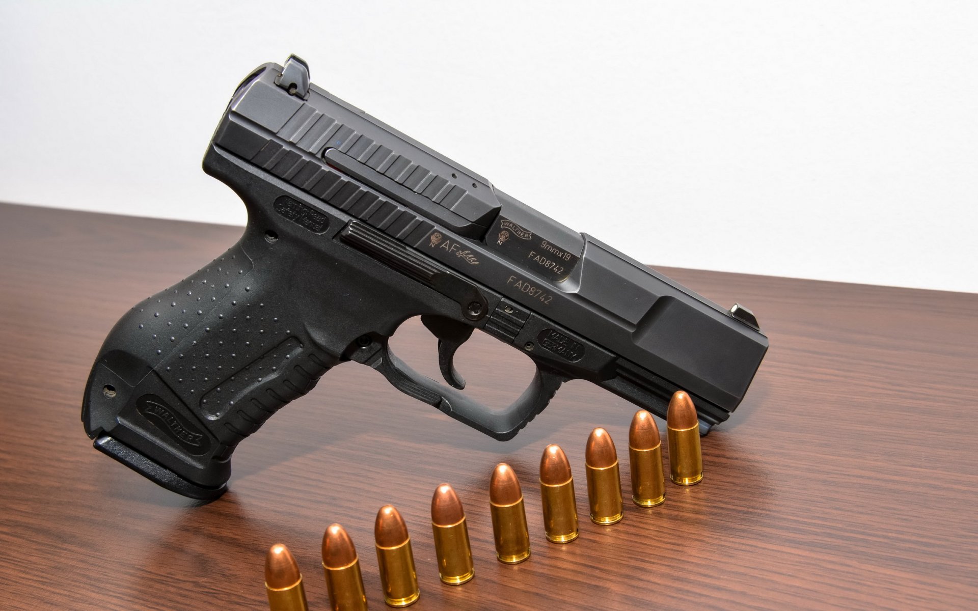 On a black background there is a machine gun cartridges and a bulletproof vest