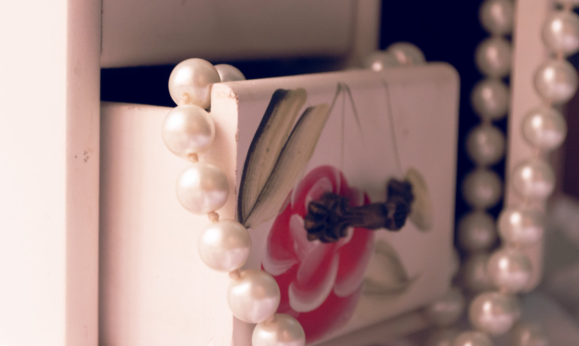 Chest of drawers studded with jewelry and beads
