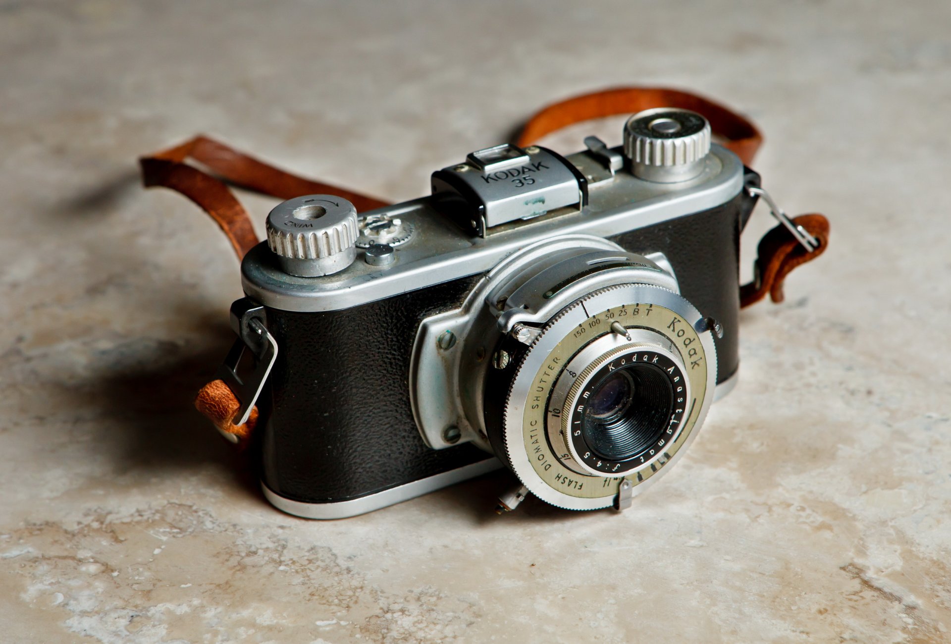 An old camera with a leather case
