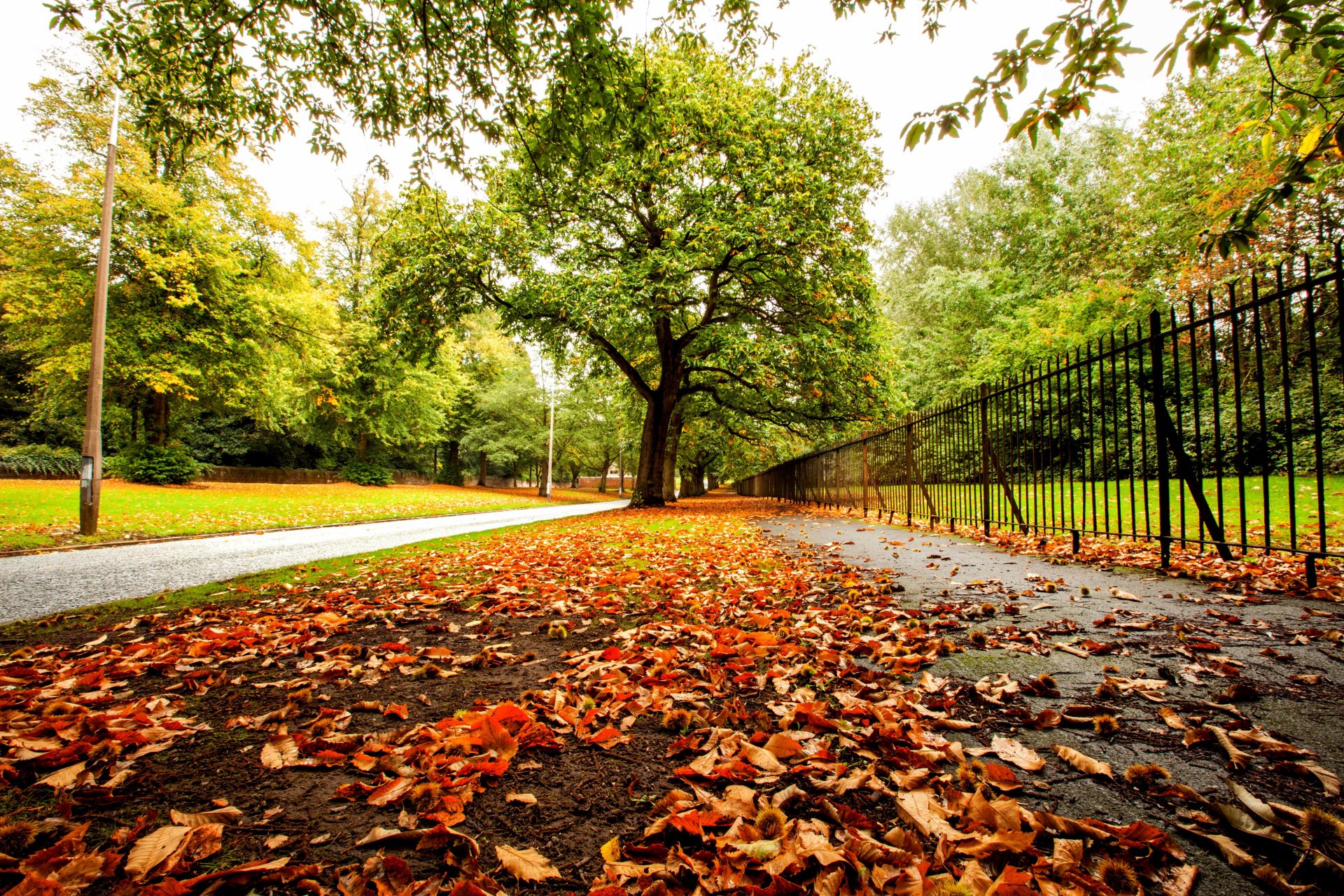 A walk through the autumn park, surrounded by colorful trees and fallen leaves