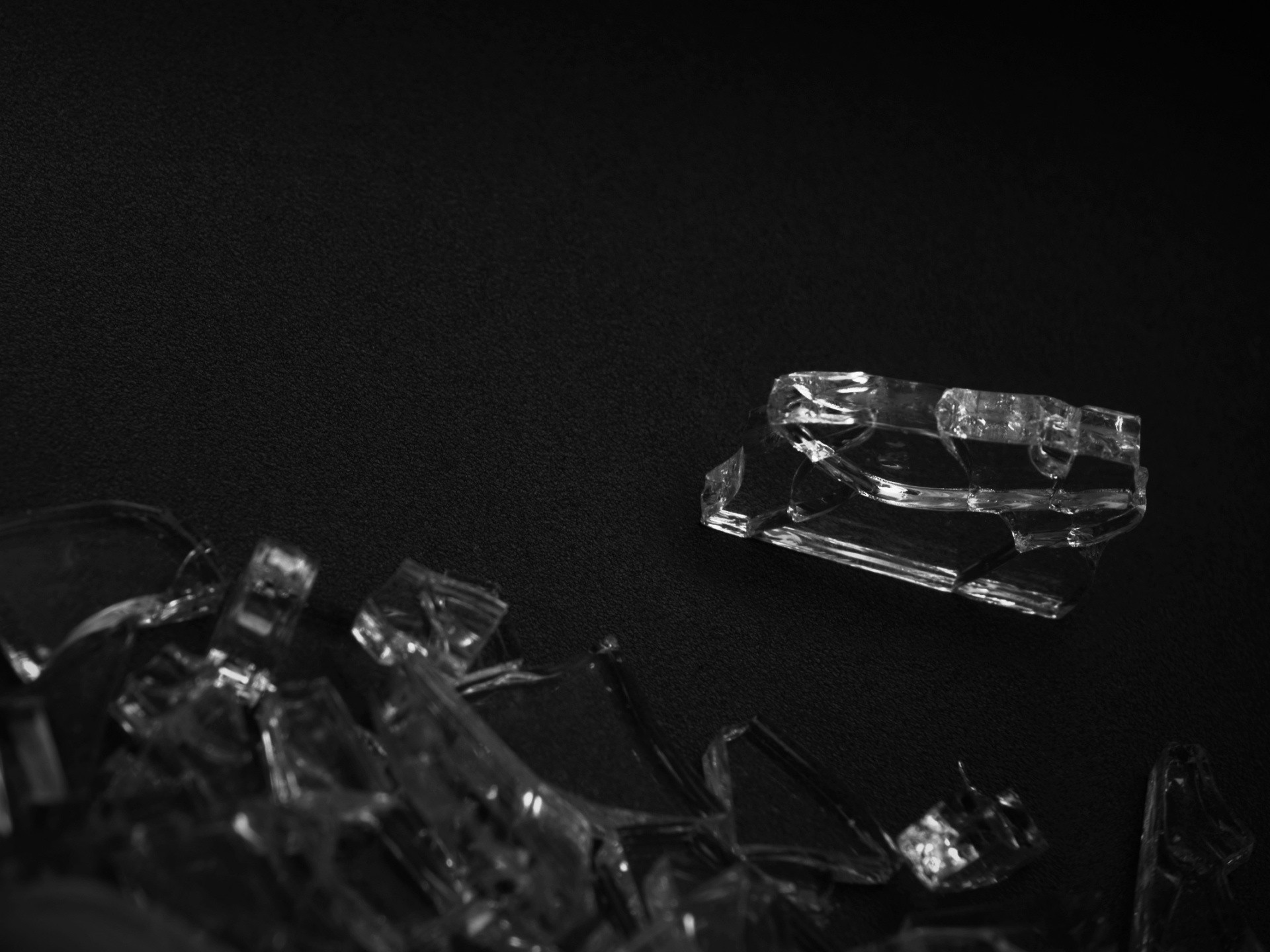 Fragments of transparent glass on a black background